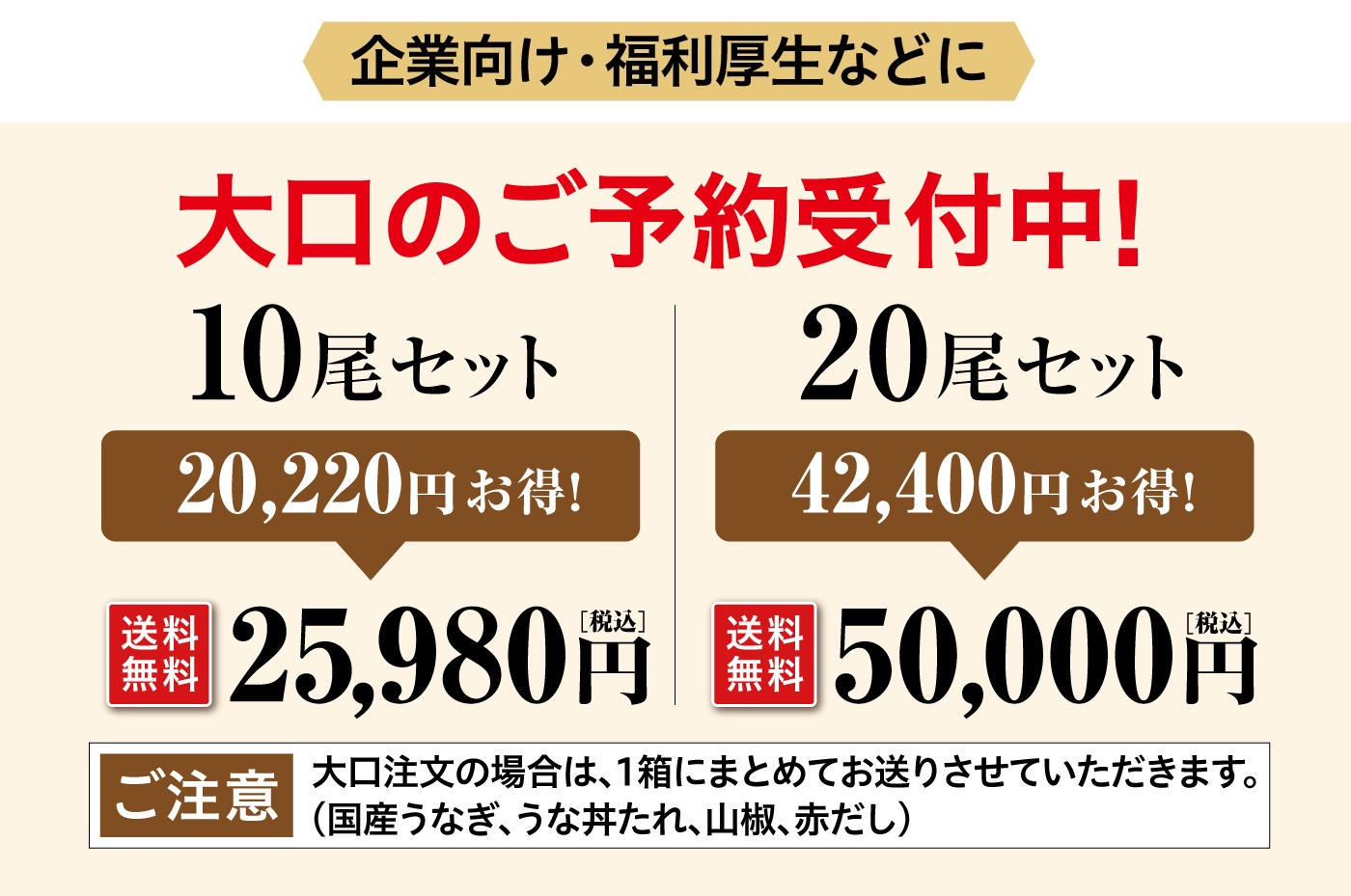 | 内容量 | うなぎ蒲焼:20尾 蒲焼のタレ:20袋(1袋35g) 山椒:40袋(1袋約0.1g) |