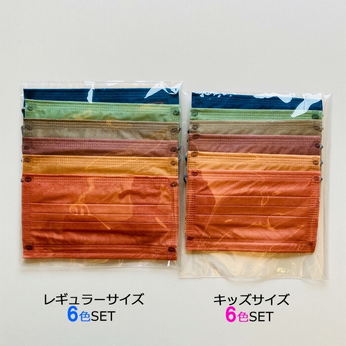 | カラー | ※キッズサイズ:6枚(6色6枚)セットの商品です。 ※レギュラーサイズ:6枚(6色6枚)セットの商品です。 1:Gray(グレー) 2:Orange(オレンジ) 3:Green(グリーン) 4:Pink(ピンク) 5:Brown(ブラウン) 6:Navy(ネイビー) |