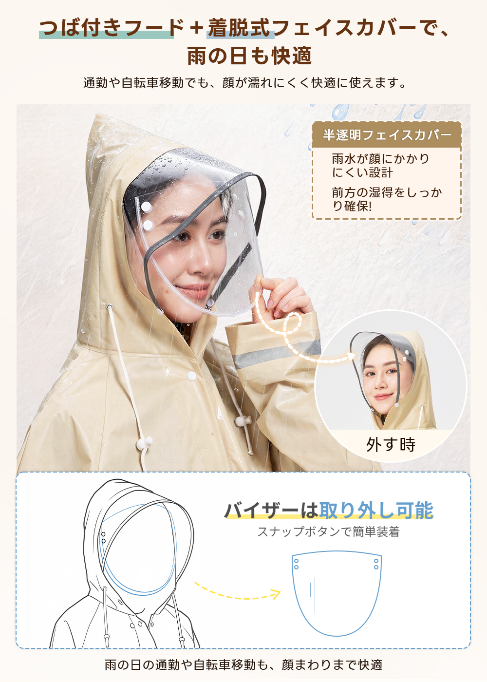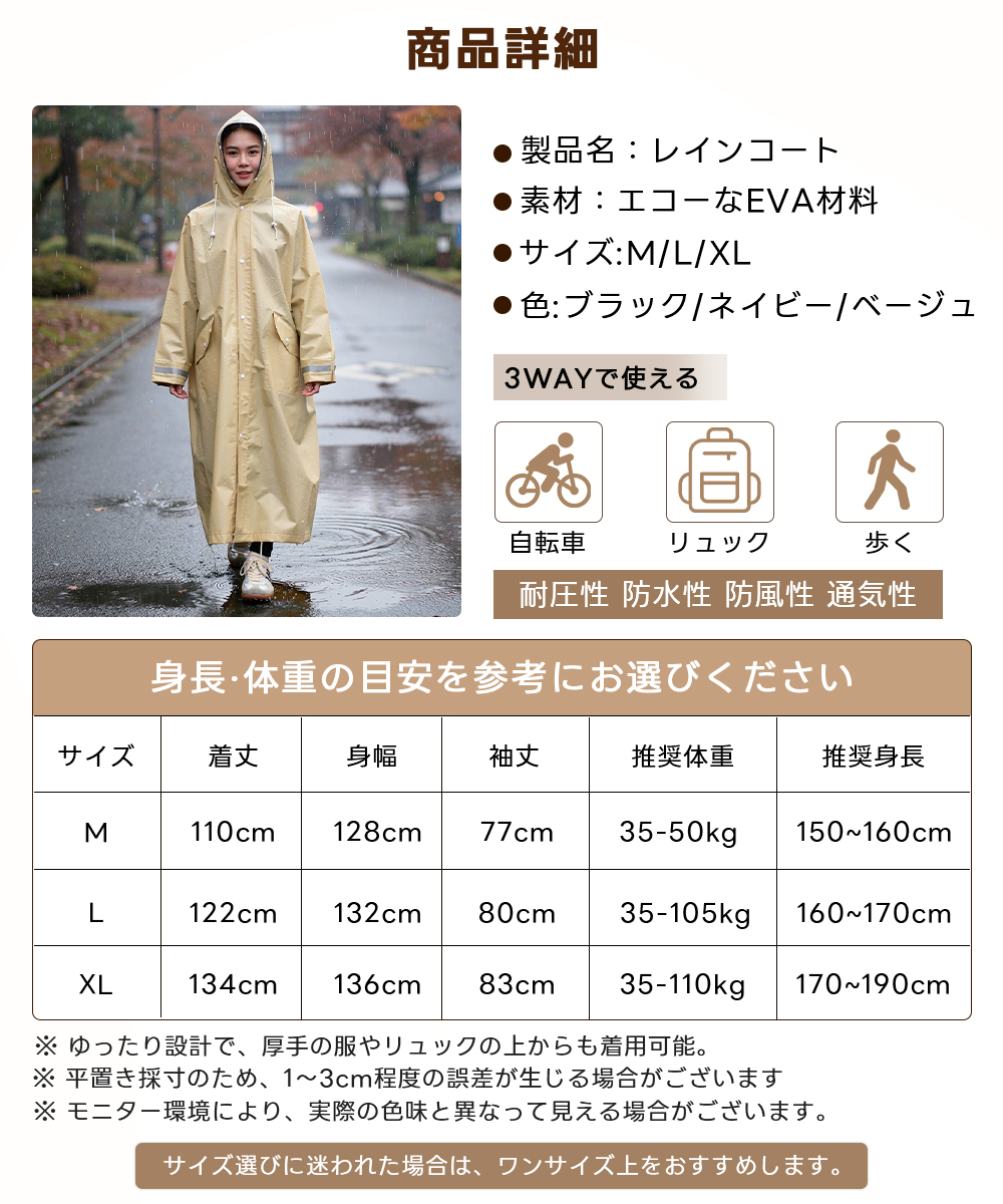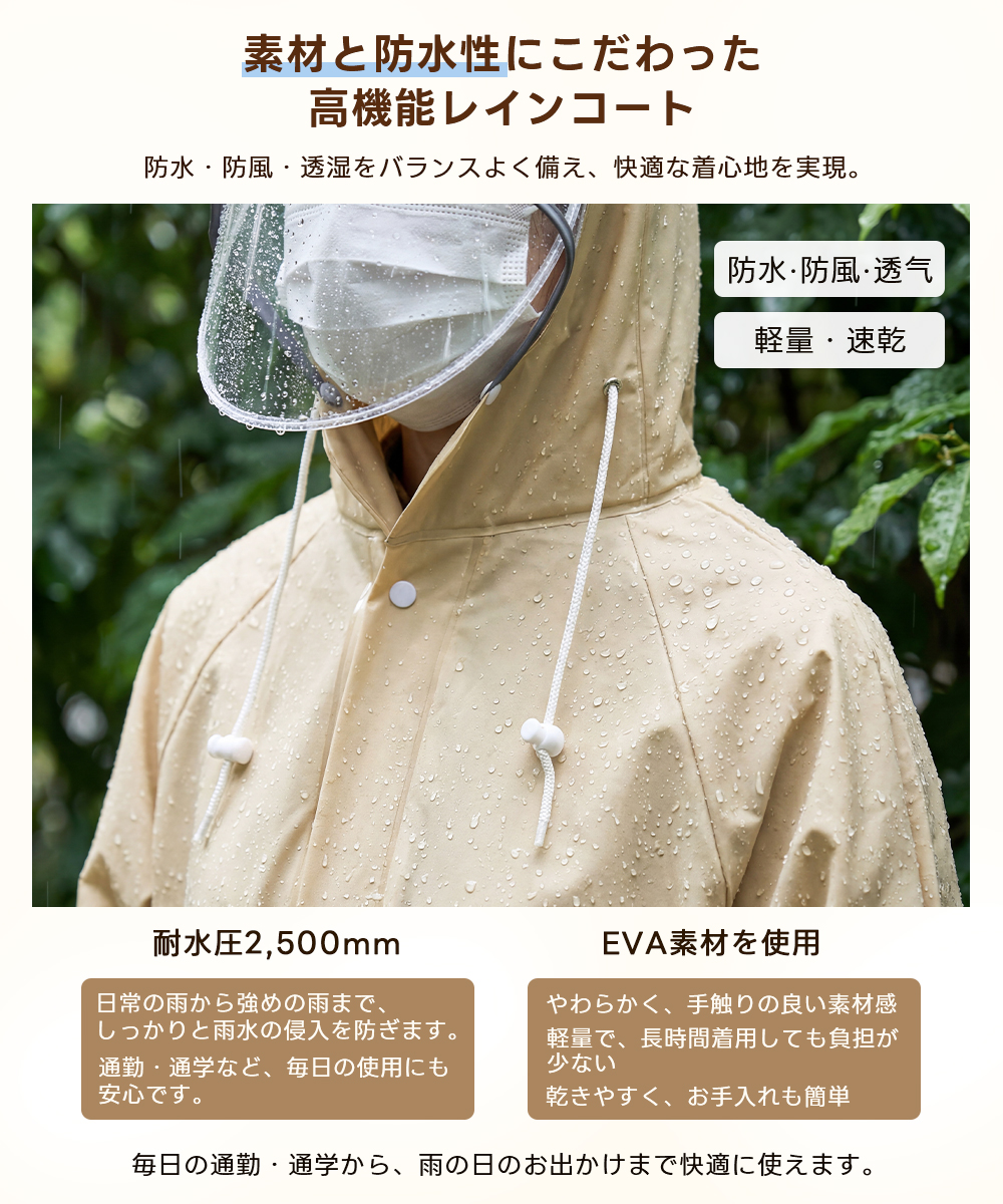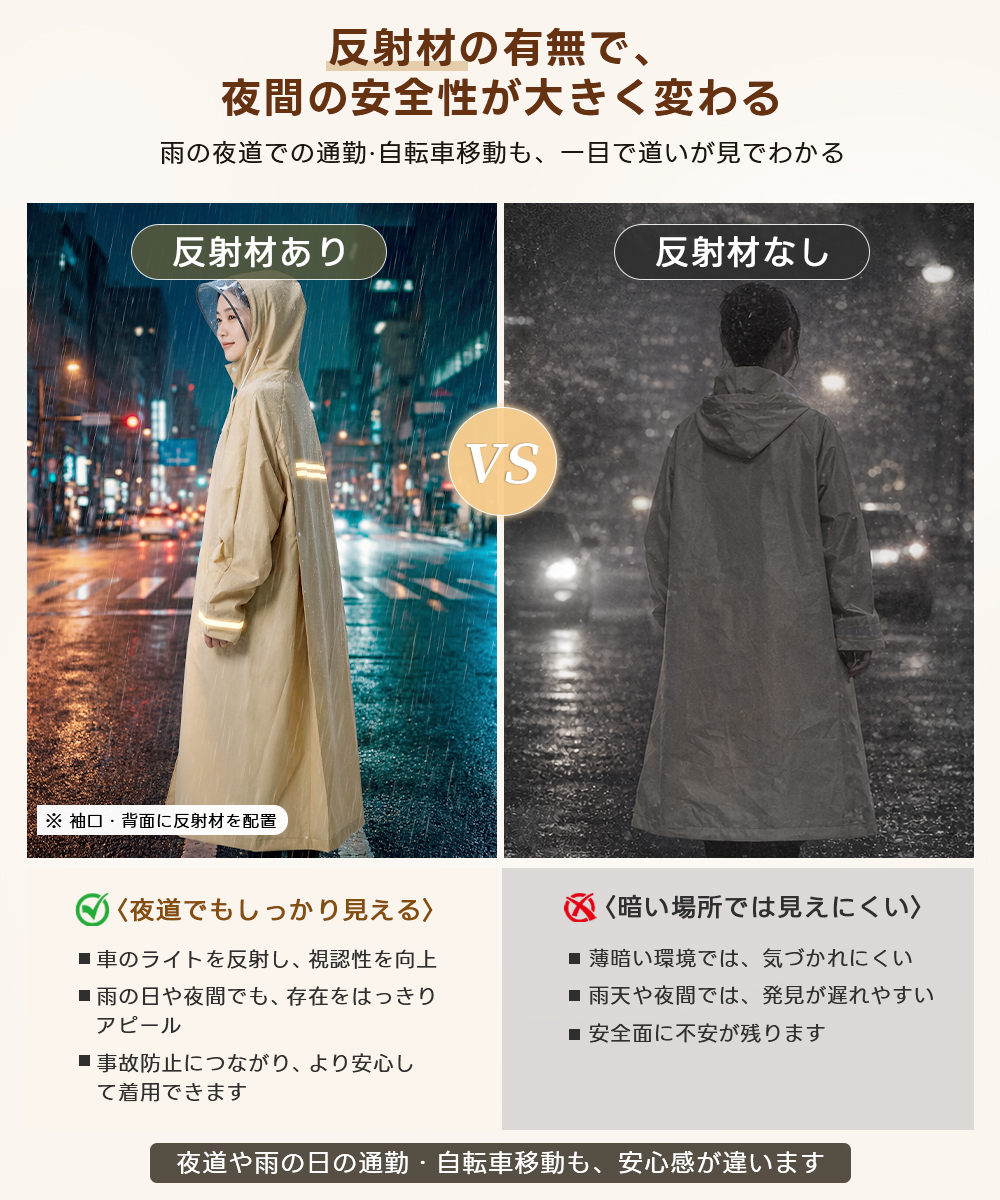 レインコート 自転車 レディース リュック対応 レインポンチョ ロング丈 おしゃれ 完全防水 撥水 軽量 カッパ 雨具 バイク 通学 通勤 中学生 高校生 ママチャリ 送り迎え 防災 梅雨 台? 反射板 二重袖口 M L XL 男女兼用 メンズ 大きいサイズ 2026改良版 返品保証 180日保証