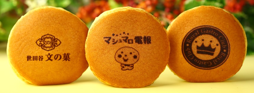 食品用のインクで文字を印刷する新しい技術を使うことで、文字やロゴ入りのどら焼きをふわふわのどら焼きの皮に印刷。世界に一つだけのどら焼きを作成いたします。