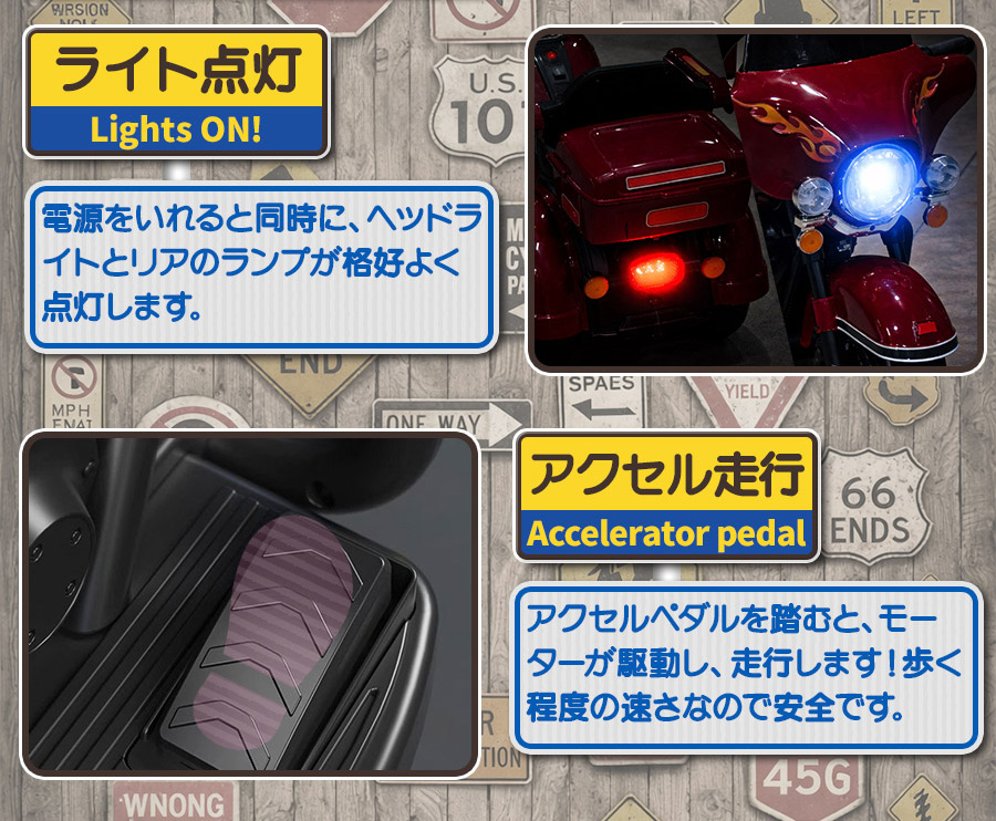 ★アクセルペダルとハンドルでお子様自身(3歳以上)が運転可能!