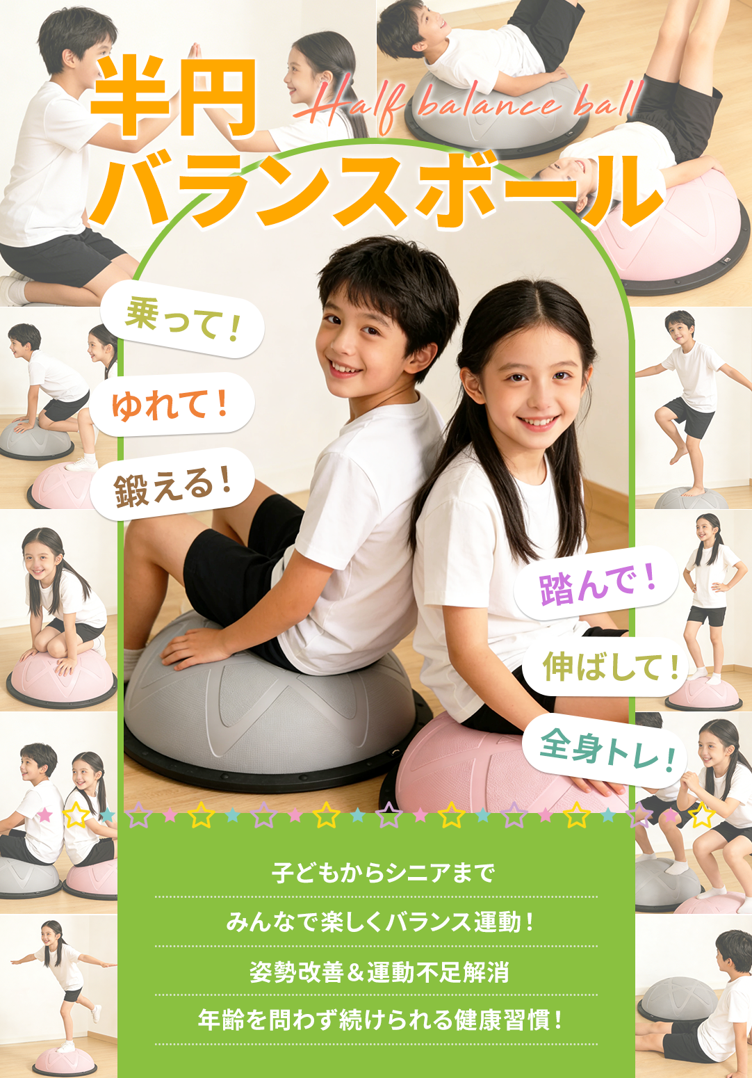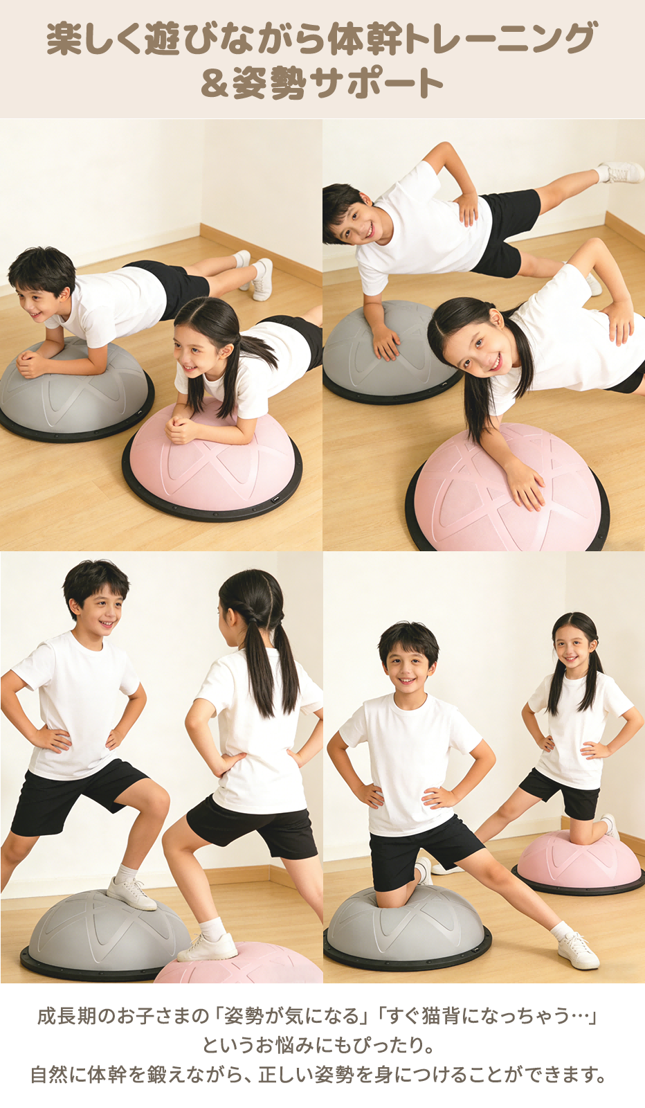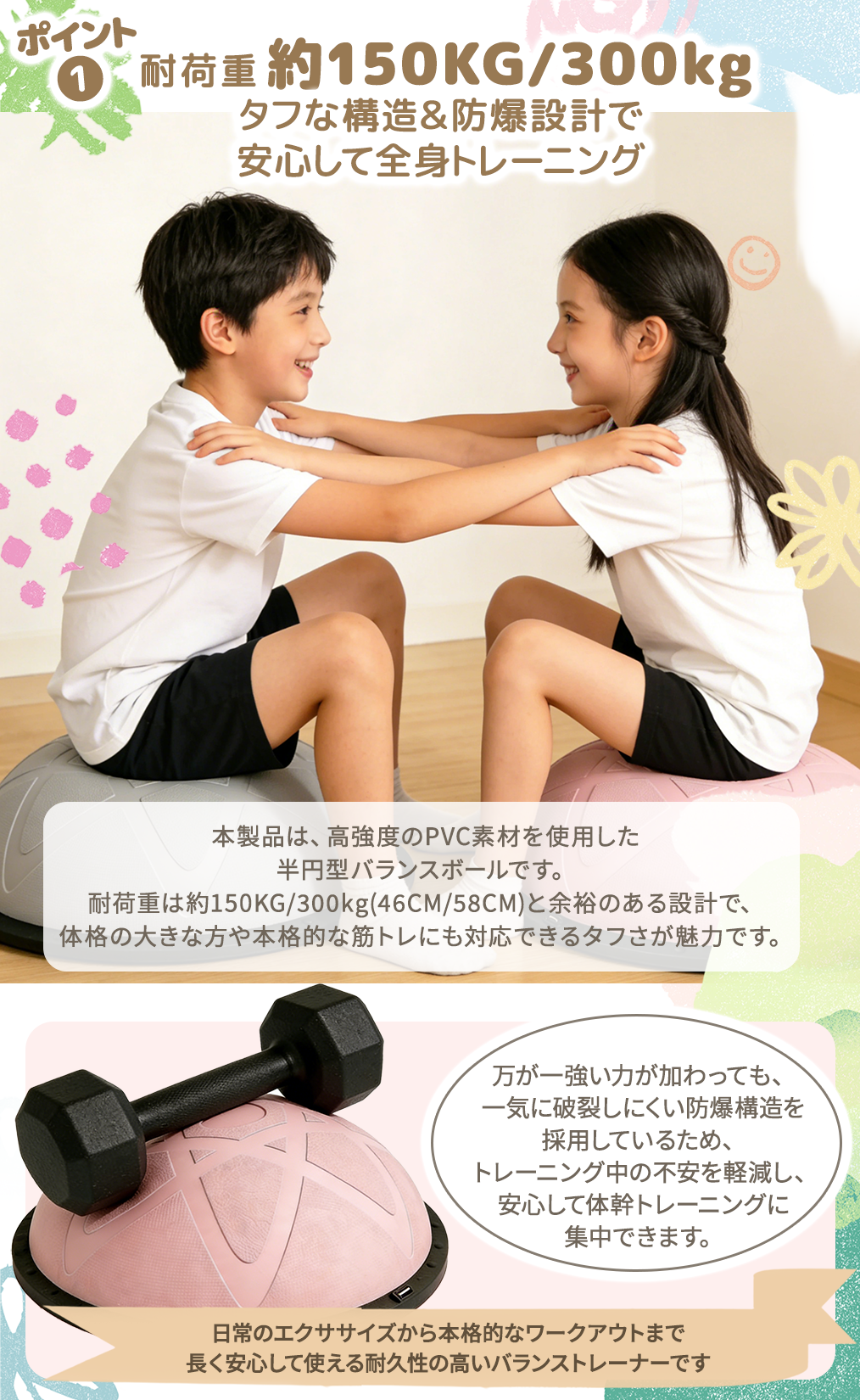 | 🚀自宅で手軽に体幹トレーニング&バランス運動! 📌半円型デザインで不安定なバランスを生み、体幹・腹筋・脚力を効率よく鍛えられます。 🏋トランポリンのように跳ねたり、バランスボードとして立ったりと多彩なトレーニングが可能。 👶お子様の体力発散や室内遊び、知育遊具としても人気。 💪大人の宅トレ・フィットネス・ピラティスにもおすすめ。 🌟バランスディスクとしても使え、運動不足解消や健康維持にも最適です。 遊びながら自然と体幹が鍛えられるので、運動が苦手な方でも楽しく継続できます。 家庭でのフィットネス・リハビリ・ストレッチなど、幅広い用途で活躍する万能エクササイズ器具です。 |
