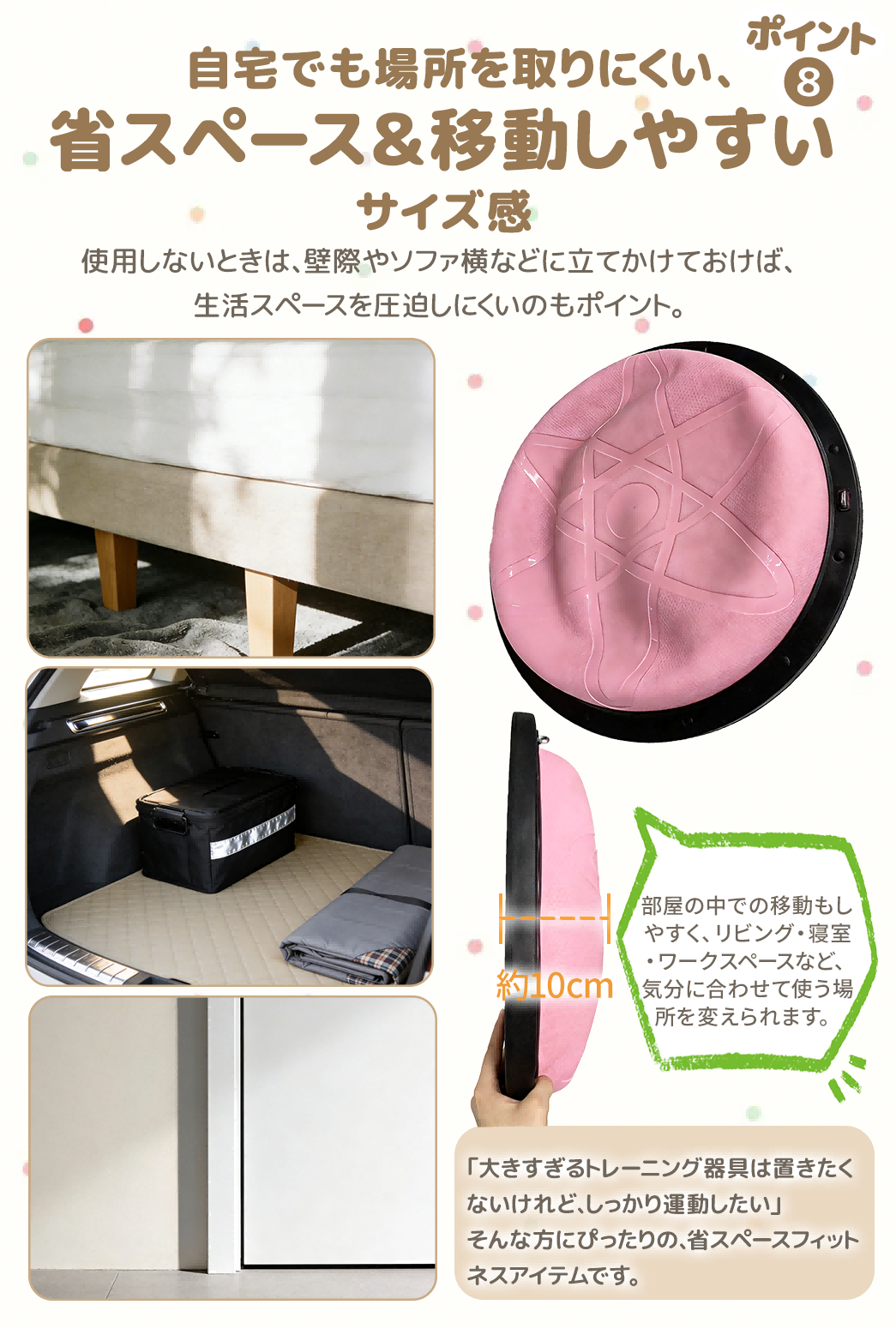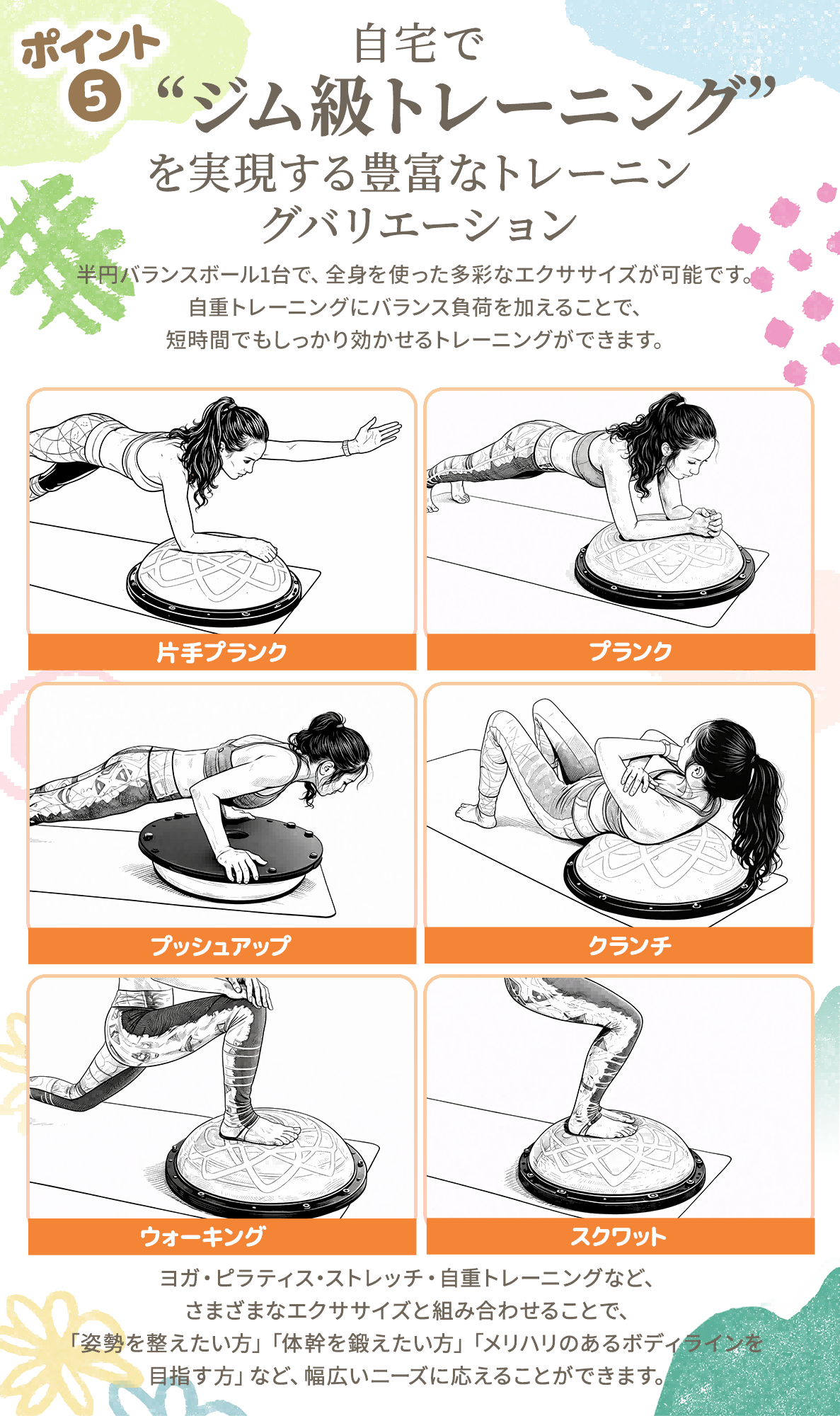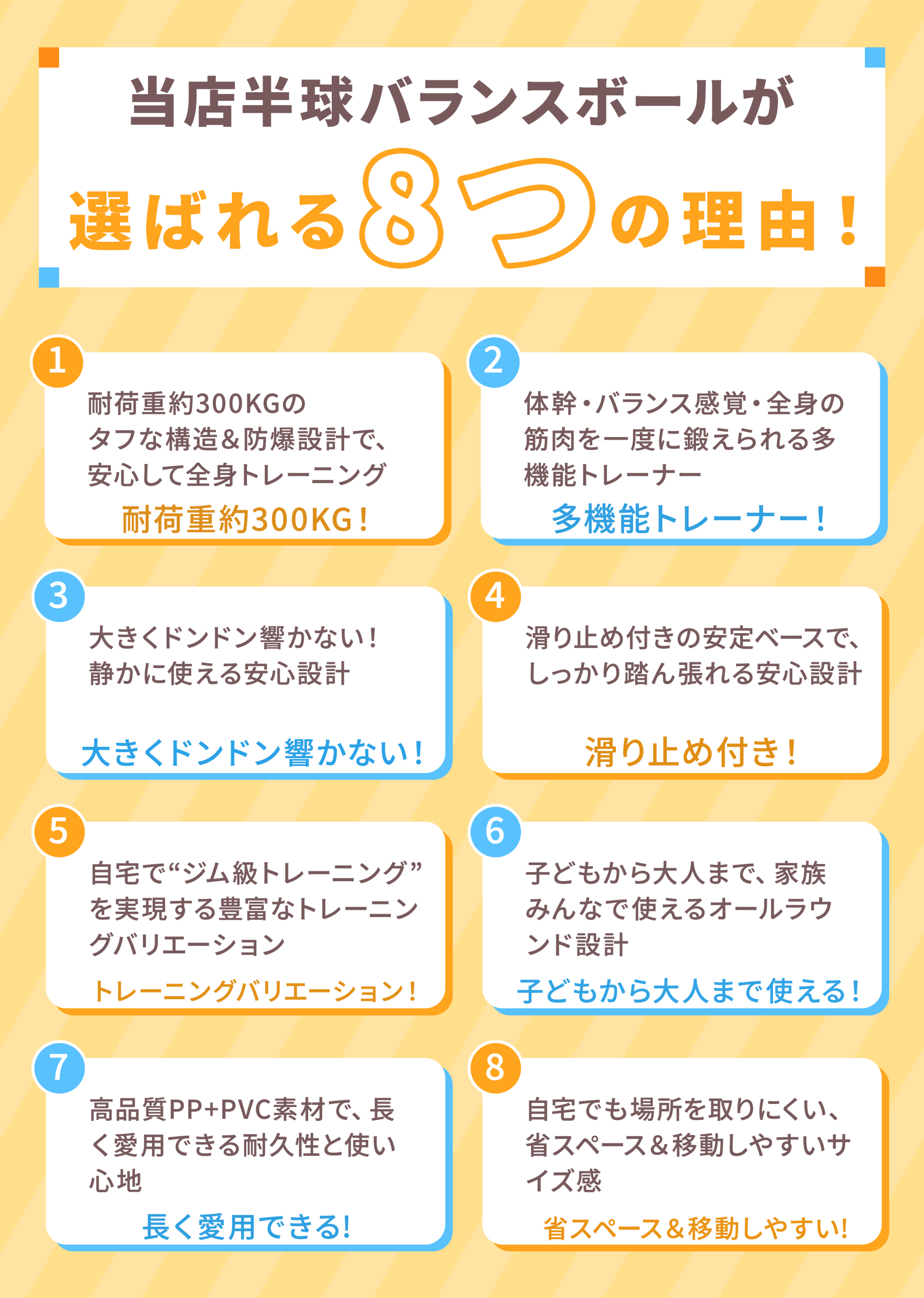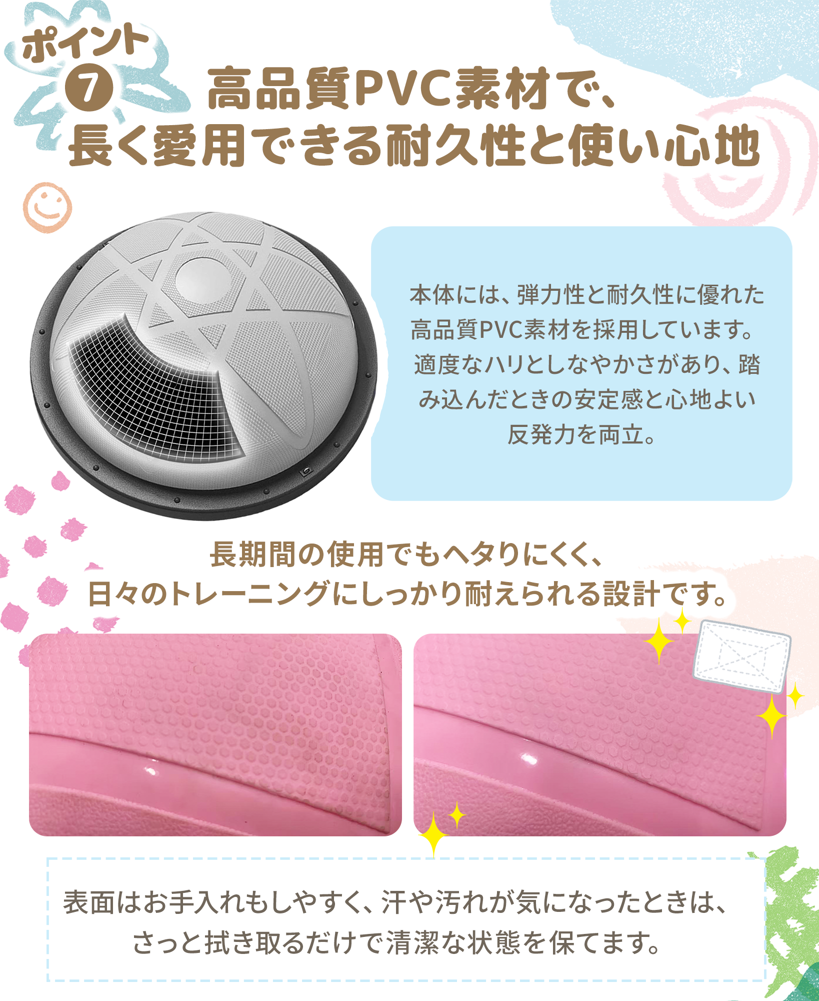 | 🚀自宅で手軽に体幹トレーニング&バランス運動! 📌半円型デザインで不安定なバランスを生み、体幹・腹筋・脚力を効率よく鍛えられます。 🏋トランポリンのように跳ねたり、バランスボードとして立ったりと多彩なトレーニングが可能。 👶お子様の体力発散や室内遊び、知育遊具としても人気。 💪大人の宅トレ・フィットネス・ピラティスにもおすすめ。 🌟バランスディスクとしても使え、運動不足解消や健康維持にも最適です。 遊びながら自然と体幹が鍛えられるので、運動が苦手な方でも楽しく継続できます。 家庭でのフィットネス・リハビリ・ストレッチなど、幅広い用途で活躍する万能エクササイズ器具です。 |