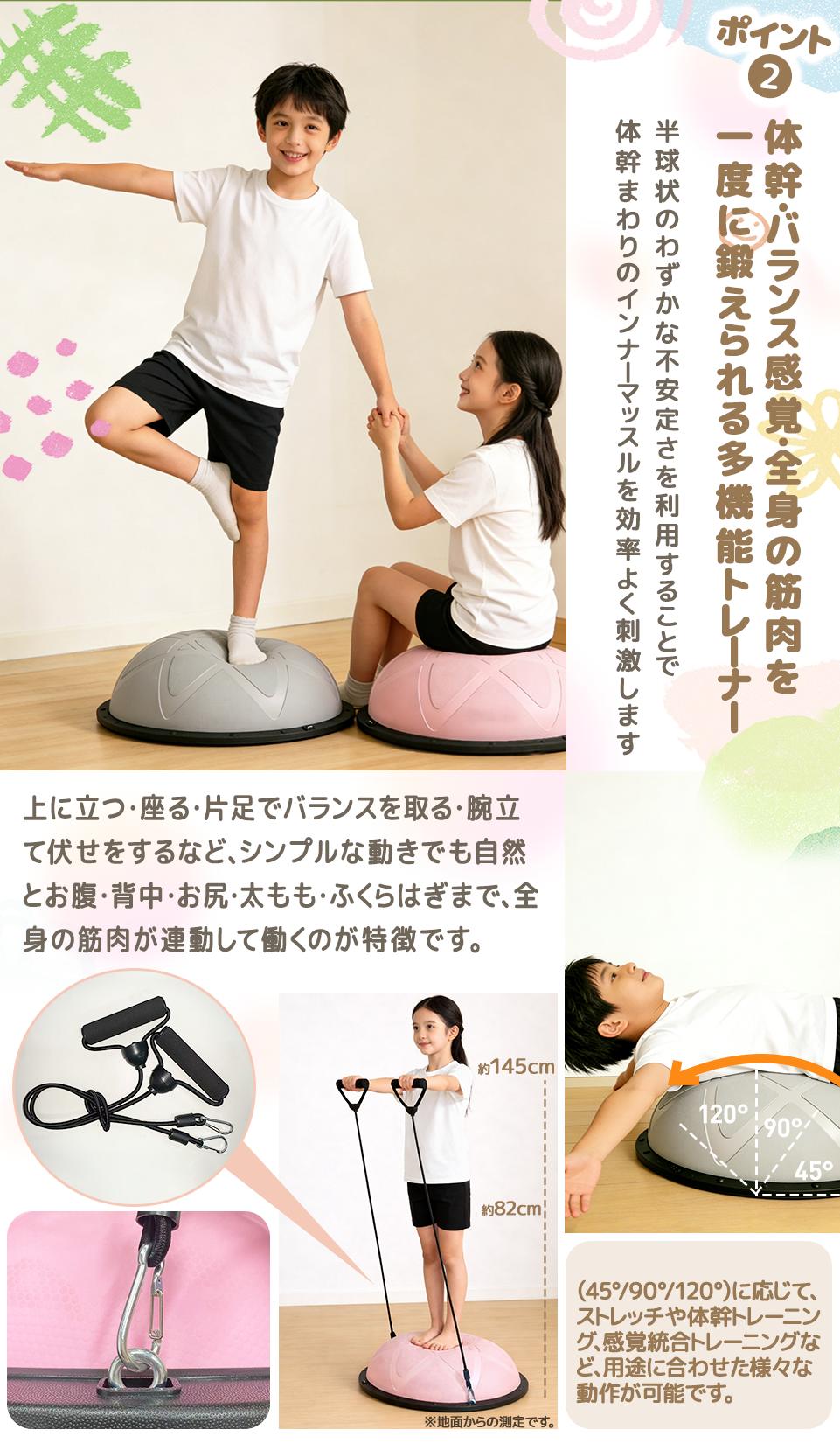| 🎓【おうちで楽しく運動!】 半円型バランスボール バランスドーム 💪体幹トレーニング&バランス強化 👫子供から大人まで使える室内遊具(46cm/58cm) |