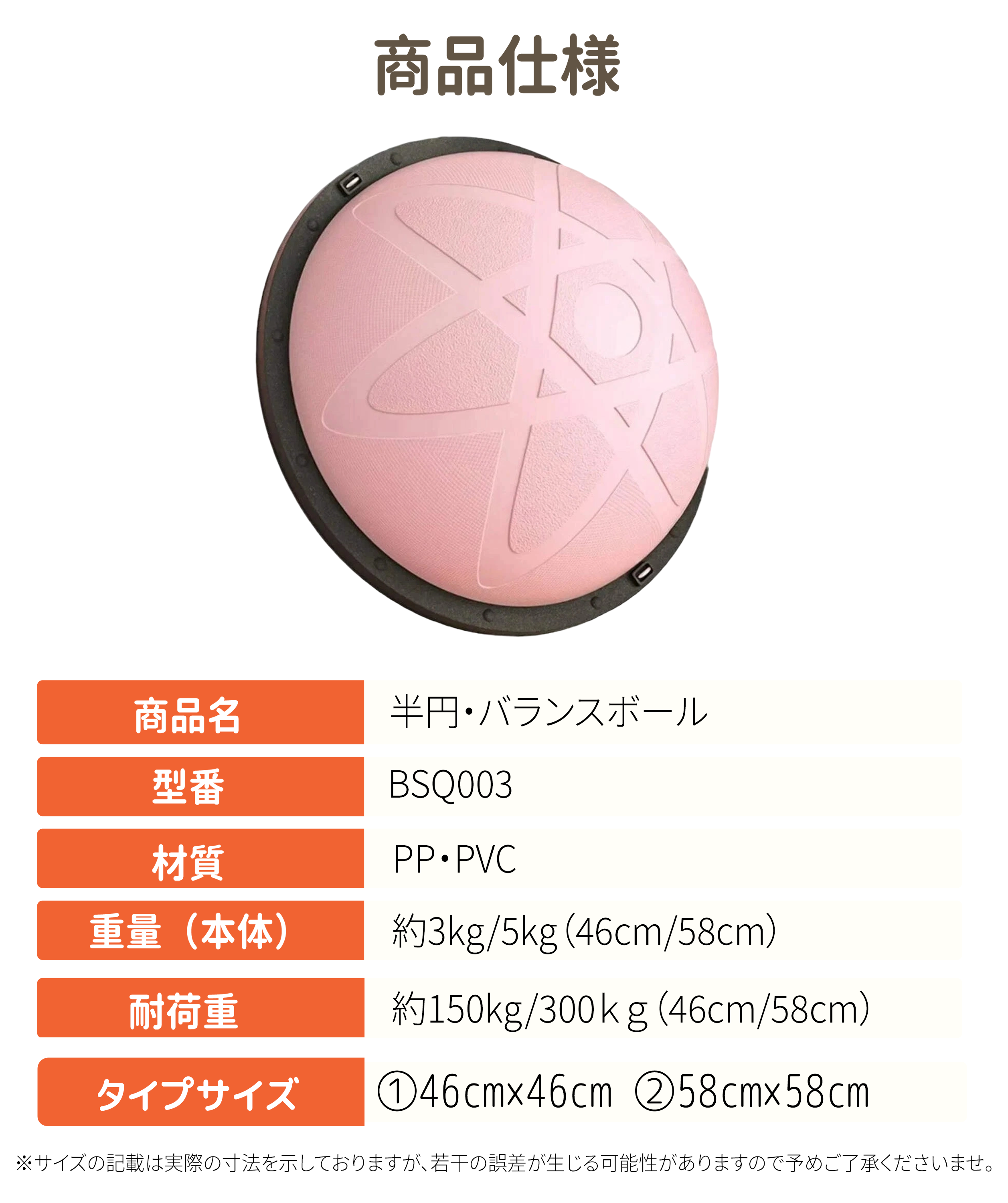 | 直径:約46cm/約58cm 半円型バランスドーム |