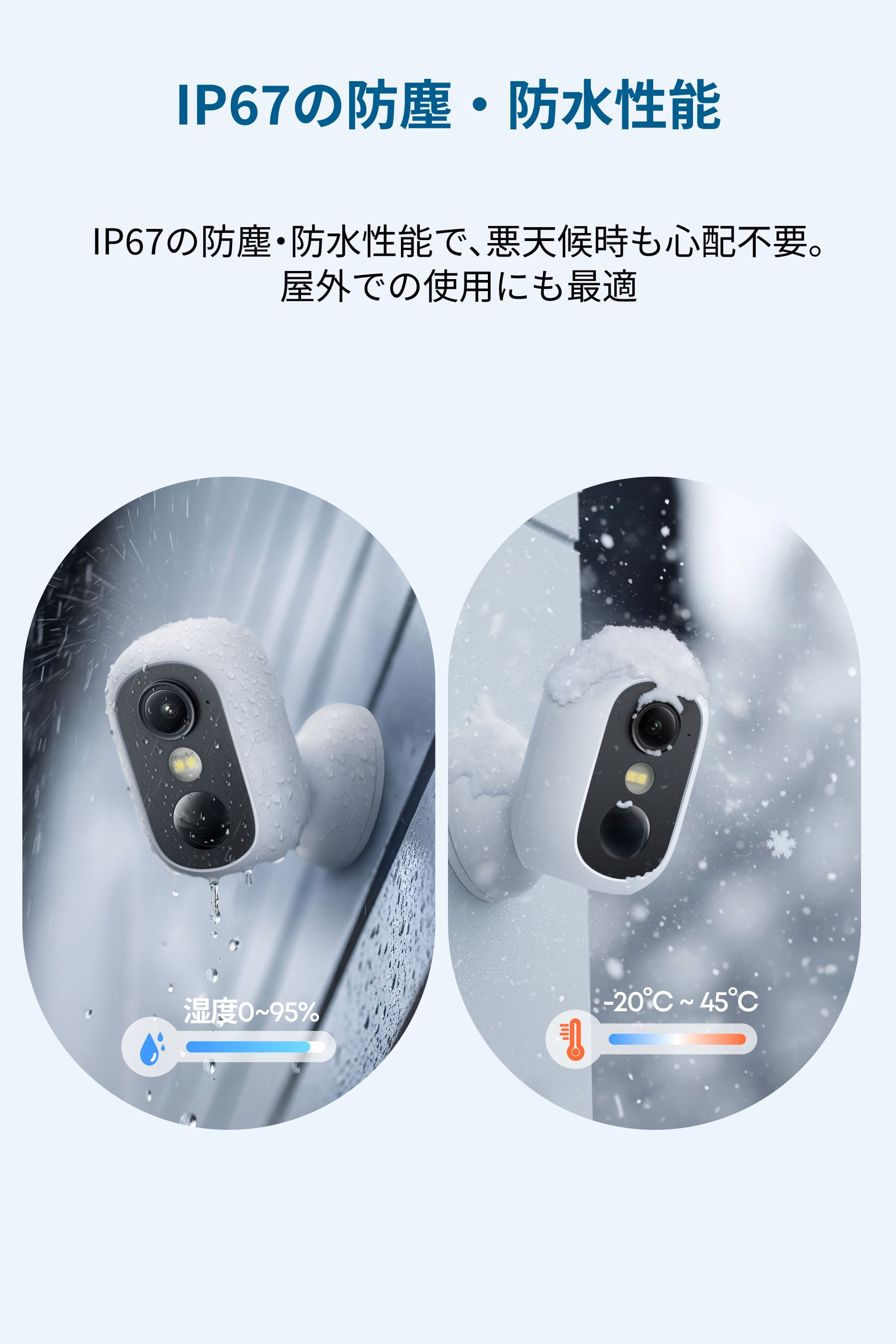 | パッケージ内容 | EufyCam C35 x 2 , HomeBase Mini、マグネットスタンド x 2、ACアダプター、USB Type-C - Type-A電源ケーブル(2m)、イーサネットケーブル (1.2m)、USB Type-C - Type-Aケーブル(0.6m)、取り付けネジパック、クイックスタートガイド、18ヶ月保証 + 6ヶ月 (Ankerで会員登録後) 、カスタマーサポート |