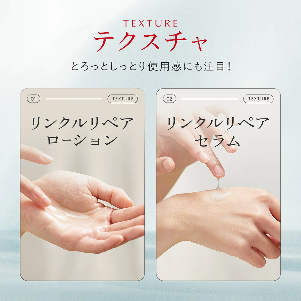 | 【リンクルリペアセラム】 Aurelie.[オレリー] ― 美肌は心を強くする ― 女性の内面と外面の美しさに寄り添い、心までも強くするブランドを目指します。肌の内側・外側から働きかけるスキンケアブランド。皮膚科学に着目して肌の本質と向き合い生み出された植物の栄養特性を活用したマルチタスクフォーミュラの実現。オールシーズンで肌土台を作り上げることで、自分の理想の肌を自由に表現することへと繋がる。 ■独自成分が年齢サインにスピーディーにアプローチ。肌の内側から生命力あふれるハリと弾力を育む。 ■肌細部にまで行き渡らせる独自開発成分「Infinity Capsule」無数の極小エイジングカプセルが肌内部の隅々まで肌に溶け込み、ハリとうるおい感をUP ■2種の植物エキス。 ・党参抽出物加水分解(部外品専用植物エキス):有効成分「ナイアシンアミド」のパワーを活かす和漢植物。 ・ダイズエキス:水分油分のバランスを保ち、透明感のあるなめらかなお肌に整える。植物性女性ホルモンとも言われるイソフラボンを構成する成分。 ■2種の酵母成分。 ・加水分解酵母:肌の保護機能を強化する。 ・酵母多糖体末:シワへのアプローチを最大化して、肌を引き締め滑らかにする ■心和む穏やかさと華やかさの両側面を融合したニュートラルな状態へと導く香り TOP :ピンクペッパー/マンダリン/オレンジ MIDDLE:ゼラニウム/ブラックペッパー/ローズ/ジャスミン LAST :フランキンセンス |