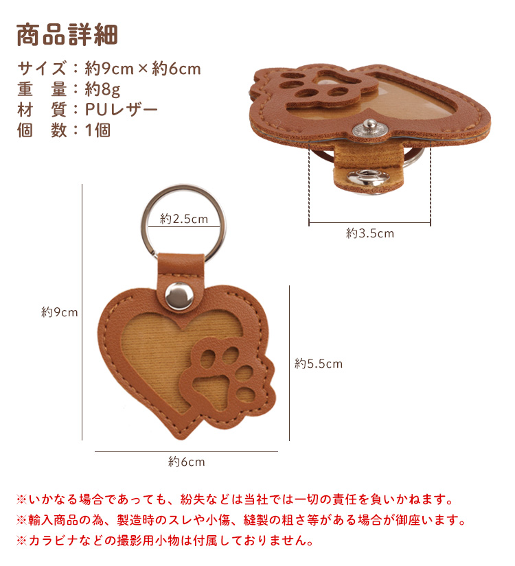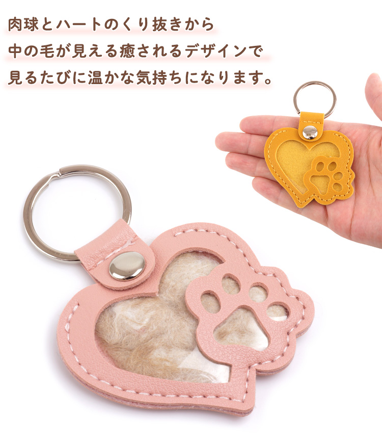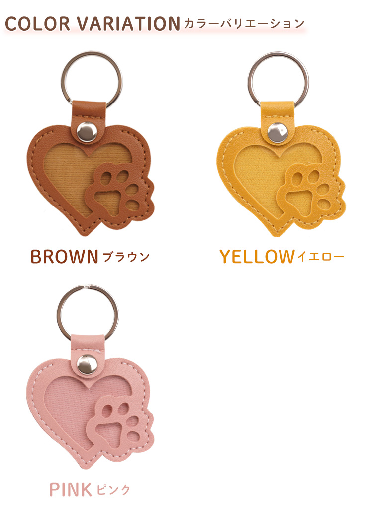 ハート&肉球型のキーホルダー。