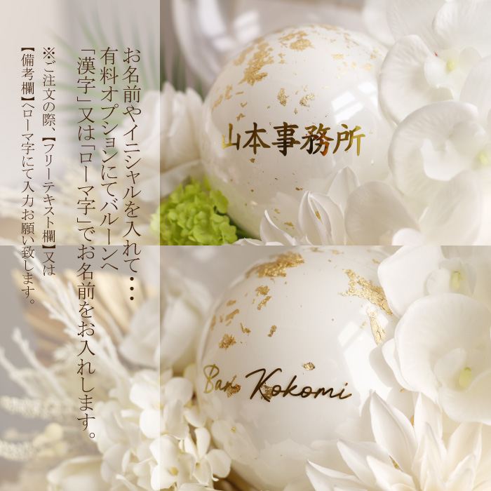 | 備考 | 当店では在庫を複数サイトで共有している為、同時にご注文があった場合売り切れとなる可能性がございます。 【発送不可地域】 「沖縄」「離島」「海外」 ■バルーンには棒がついておりますので 小さいお子様にはご注意下さい。 ■造花やデコレーションアイテムは 季節によって変更になる場合がございますが、 商品イメージは崩さずアレンジ致しますので ご了承下さいませ。 ■金色のパームリーフは天然素材を使用しております。 大きさや形などに個体差がございますので、予めご了承ください。 ■モニターによって実物と多少色が異なる場合がございます。 |