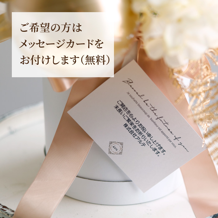 | メッセージカードについて | ご希望のお客様はご注文の際、「備考欄」にご記入下さい。 ■絵文字や記号を使用したメッセージ文面は、文字化けする可能性があります。 ご使用にならないようお願い致します。 |