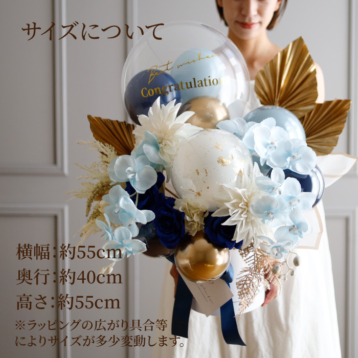 | セット内容 | ・アーティフィシャルフラワー ・透明バルーン ・ラバーバルーン ・リボン ・おもり ・円筒ボックス |