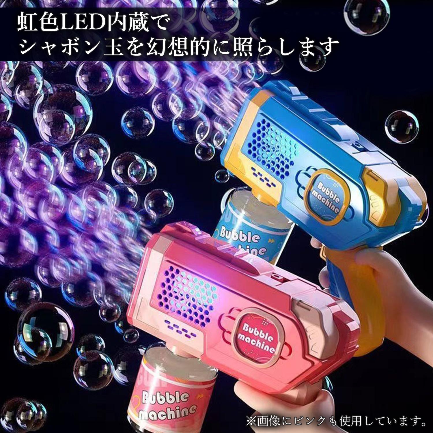 バブルガン ブルー 電動バブルガン バズーカ型 LEDライト付 自動連続シャボン玉メーカー 液漏れ防止 電池式(単3電池4本) ((S