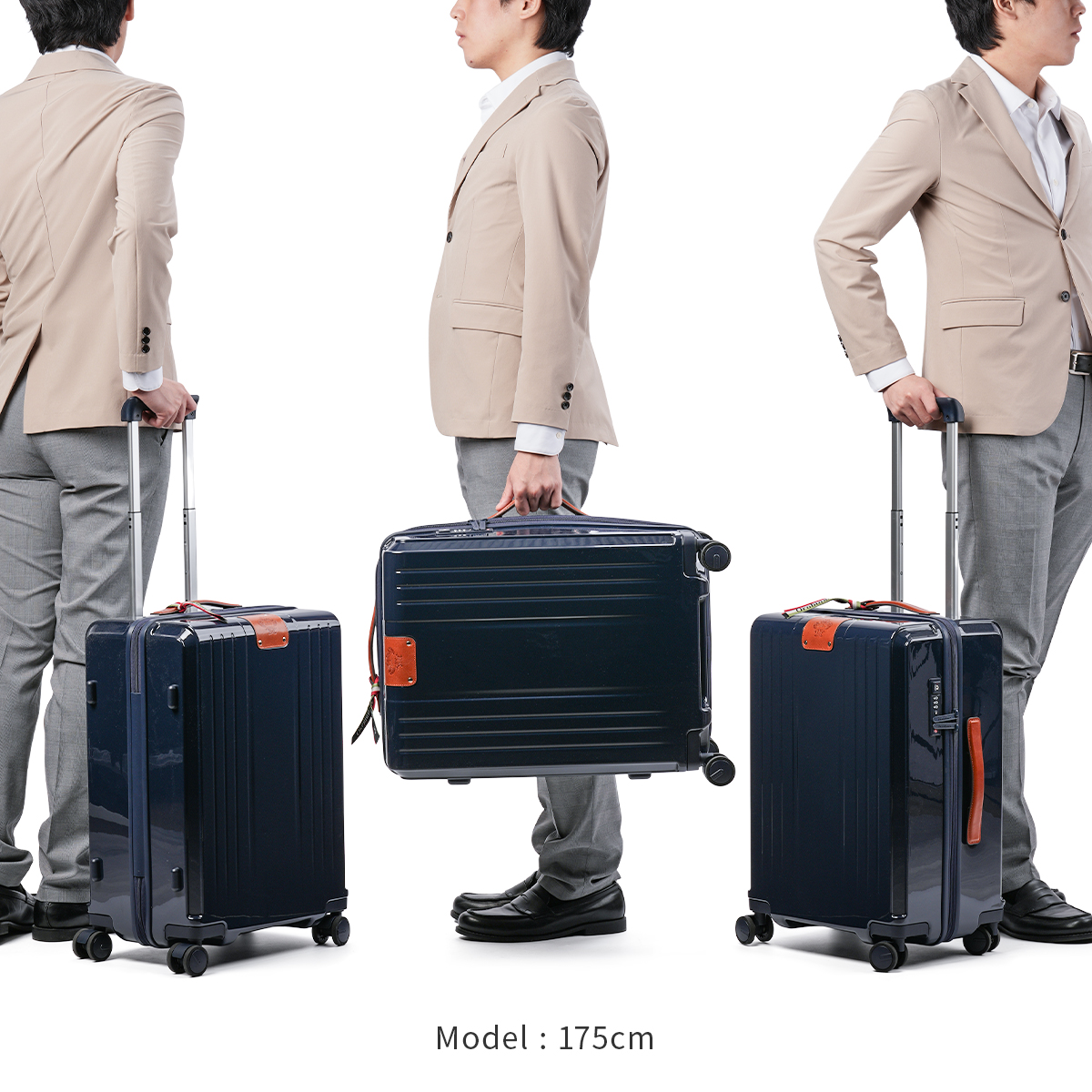 | ブランド |Orobianco / オロビアンコ シリーズ |Scintillare / シンティラーレ 品番 |92842 形状 |スーツケース Mサイズ |キャリーケース 総外寸 |W430×H590×D260[mm] 本体外寸 |W400×H540×D260[mm] 重量 |約 3.6kg 容量 |約 50L 滞在目安 |3泊 4泊 5泊 程度 素材 |主素材:ポリカーボネート |副素材:牛革 生産国 |中国 仕様 |預け入れ手荷物サイズ |サイレントキャスター® |ワンタッチ キャスターストッパー機能 |TS認可ダイヤルロック搭載 ATTENTION ●サイズはメーカー公称値(許容される最小値と最大値の中心値)です。 ●このスーツケースのTSAロックはダイヤルコンビネーションロックです。鍵穴はTSA職員が緊急の際に解錠して検査を行うためのものであり、差し込み式のキーは付属しておりません。 ●荷物をお預けの際は、キャスターストッパーをOFFにしてください。 ●ストッパーはONの状態でも、強い力によってラゲージが移動する場合があります。 |