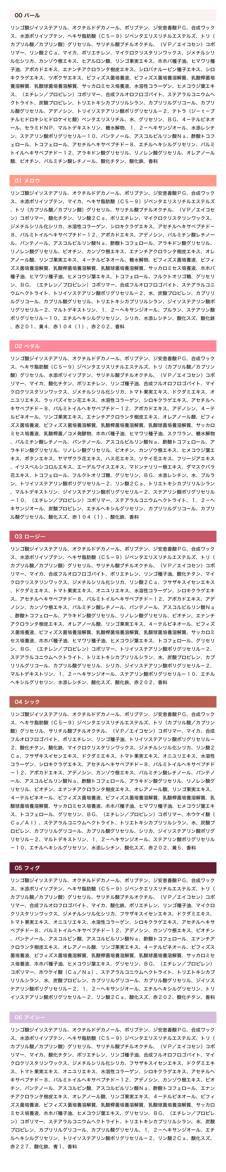 全成分、内容量、商品名:上記記載