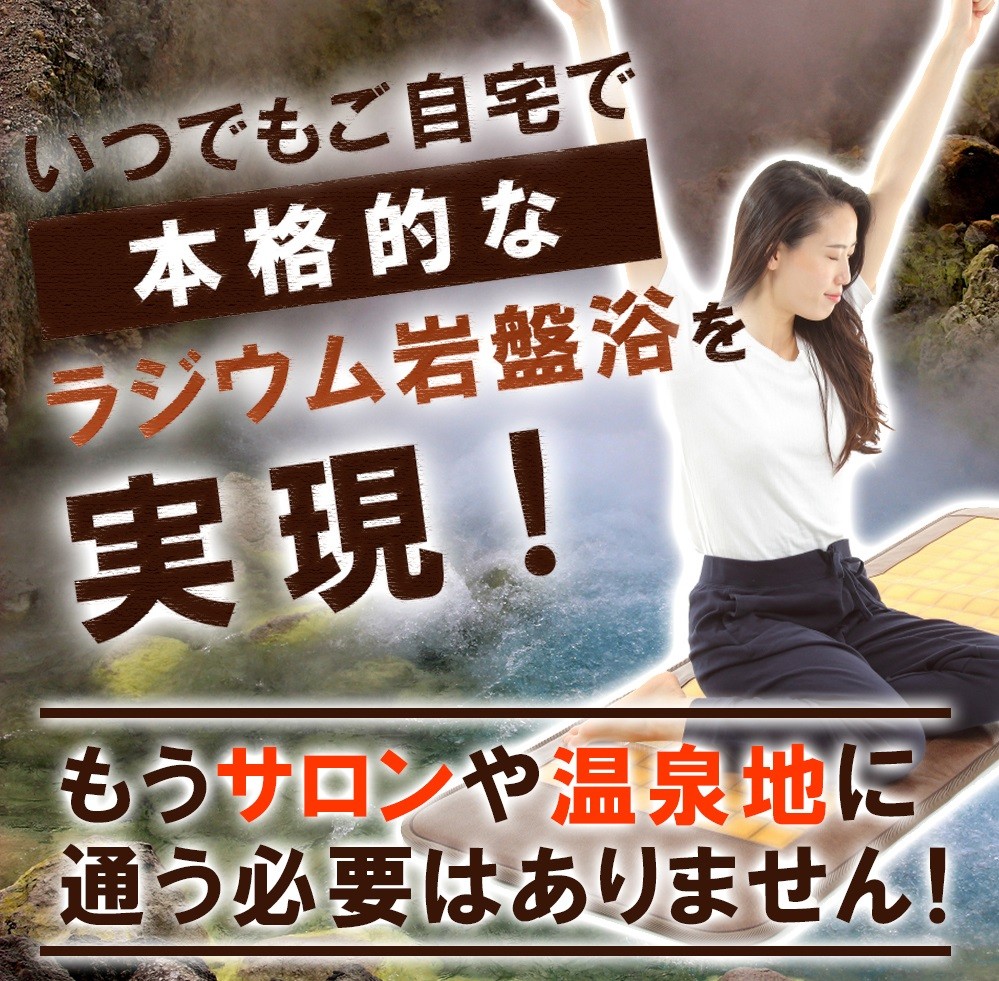 ホルミシス効果を直接体感できるラジウム温泉は国内に約50箇所あります。秋田県の玉川温泉をはじめ鳥取県の三朝温泉、岐阜県のローソク温泉、山梨県の増富温泉などがあります。ラジウム岩盤マットはラジウム温泉と同じようなホルミシスパワーを、自宅で体験することができます。