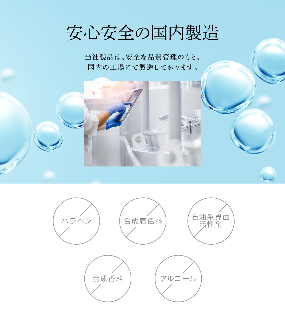| 使用上の注意 | ●お肌に異常が生じてないかよく注意してご使用ください。お肌に合わないとき、すなわち次のような場合にはご使用をお止めください。そのまま使用を続けますと、症状を悪化させることがありますので、皮膚科専門医などにご相談されることをお勧め致します。 (1)使用中、赤み、はれ、かゆみ、刺激、色抜け、(白斑など)や黒ずみなどの異常があらわれた場合。 (2)使用したお肌に、直射日光が当たって上記のような異常が現れた場合。 ●傷やはれもの、湿疹など以上のある部位にはお使いにならないでください。 ●目や口に入った場合は、すぐに水で洗い流してください。 |