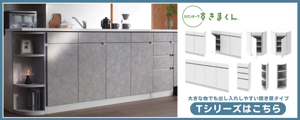 扉・引出前板:ポリエステル樹脂化粧繊維板(W・MW・BB)、オレフィン樹脂化粧繊維板(SB・MG・MB・WS・LA・RN・GR・SP・DB)、強化紙(M・BW)