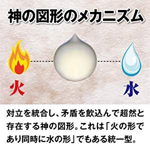 この世の事象は陰と陽という相反する二つの事象で成り立っています。摩尼宝珠は「火」(カ)と「水」(ミ)の二つの事象を統合した形で神(カミ)の姿を具現化した姿とも言えます。空海が弟子たちに残した『御遺告』にも摩尼宝珠(如意宝珠)についての記述があり、「如意宝珠は宇宙をつかさどる如来の意図の象徴であり、生命あるもの全てに慈愛を注ぐ如来の慈悲のあらわれである。宝珠は如来の分身であるというのが、真実である。これは秘密の上の秘密、甚深の上の甚深なるものである」と記されています。また、『御遺告』の中に記されている如来とは、密教において宇宙そのものと一体と考えられている大日如来のことを示しています。