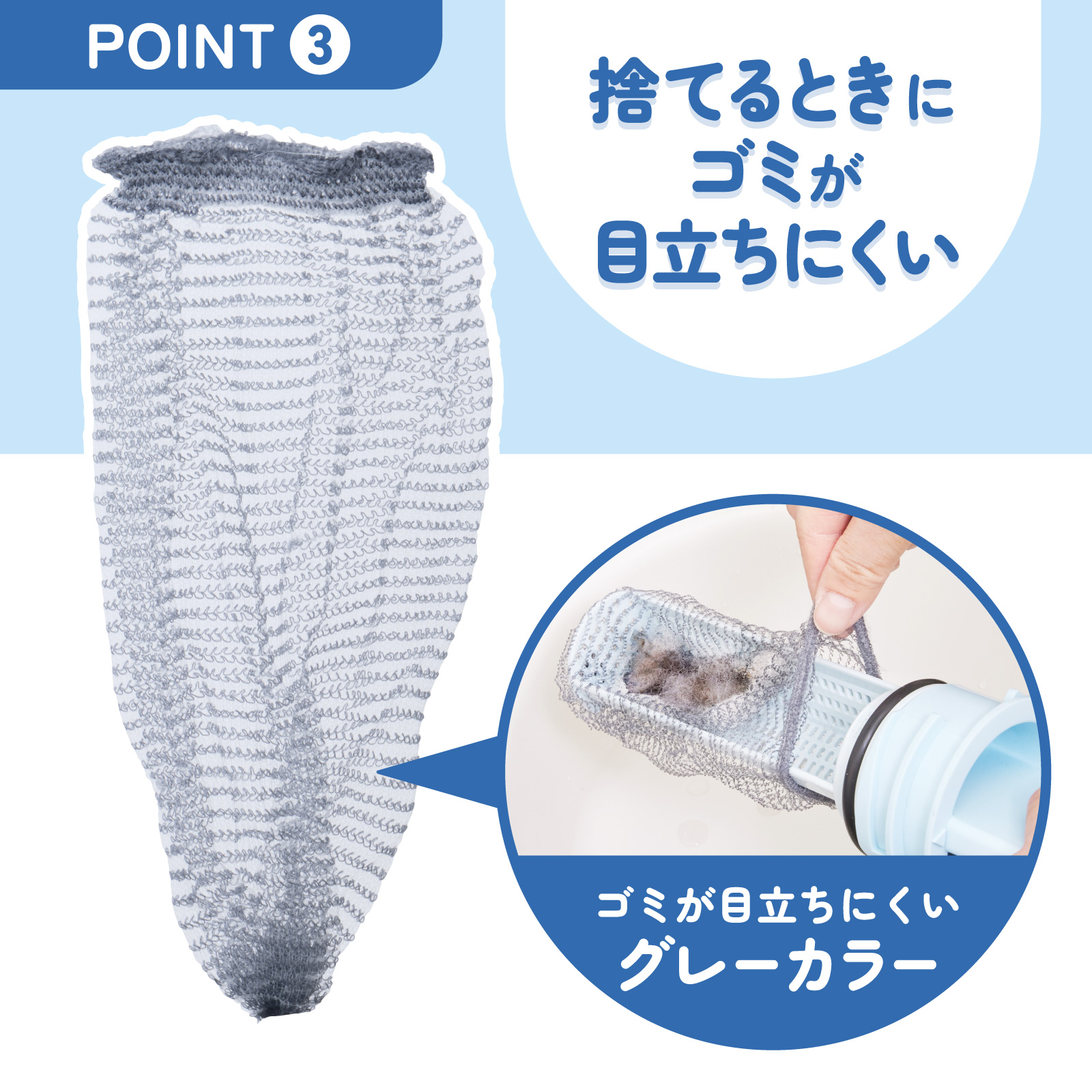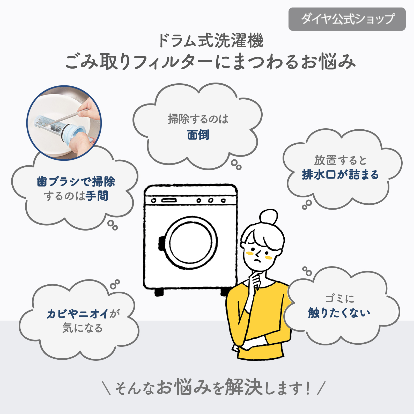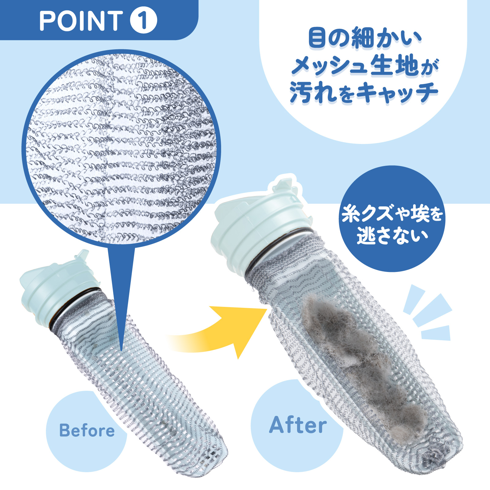 | ■ 商品特長 ドラム式洗濯機の糸くずフィルター本体に取り付けておくだけで、目の細かいメッシュ生地が糸くずや髪の毛をキャッチし、ゴミに触ることなく簡単に捨てることができます。 ●目の細かいメッシュ生地 糸くずや髪の毛をフィルターがキャッチしてくれます。 ●簡単にセット ドラム式洗濯機のフィルター本体に合う、取り付けやすいカタチなので、簡単にセットできます。 ●ゴミが目立ちにくいカラー 気持ち悪いゴミが目立ちにくいグレーのフィルターなので気分よく交換できます。 ●衛生的 使い切りタイプなので、衛生的です。 ■商品仕様 色:グレー 素材:ポリエステル、ポリウレタン 本体寸法:横約6.5cm×奥行き約0.5cm×高さ約13cm 本体質量:約0.5g ■ 注意 ・ご使用の洗濯機の取扱説明書をよく読んでお使いください。 ・使用後にゴミがたまったら、本品を取り換えてください。 ・本品を使用した後、汚れたりゴミがたまったまま継続して使用しますと、本品の目が詰まり、水漏れや洗濯機のエラーの原因になります。再利用せず、定期的な交換をお勧めします。 ・本品が汚れたまま長期間使用しないでください。カビや水垢などの原因になります。 ・洗濯機のフィルター本体のサイズによっては、交換頻度が高くなる場合があります。また、洗濯物の量や衣類の種類によっては、一回の使用で本品にゴミがたまることがあります。 ・新しいフィルターに交換しても洗濯機にエラーが表示される場合は使用をおやめください。 |