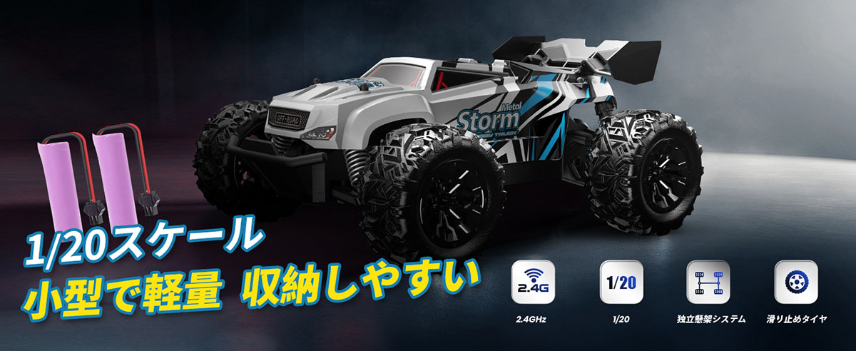 【1/20スケール&2.4GHzリモコン】小型で軽量なため、収納しやすいです。2.4GHzよりリモコン、他の電波の影響を受けず、複数の車両が同時にプレイでき、より正確な操作が可能です。また、遠距離からでも操作が可能で、より広い範囲(80m)での遊びを楽しめます。