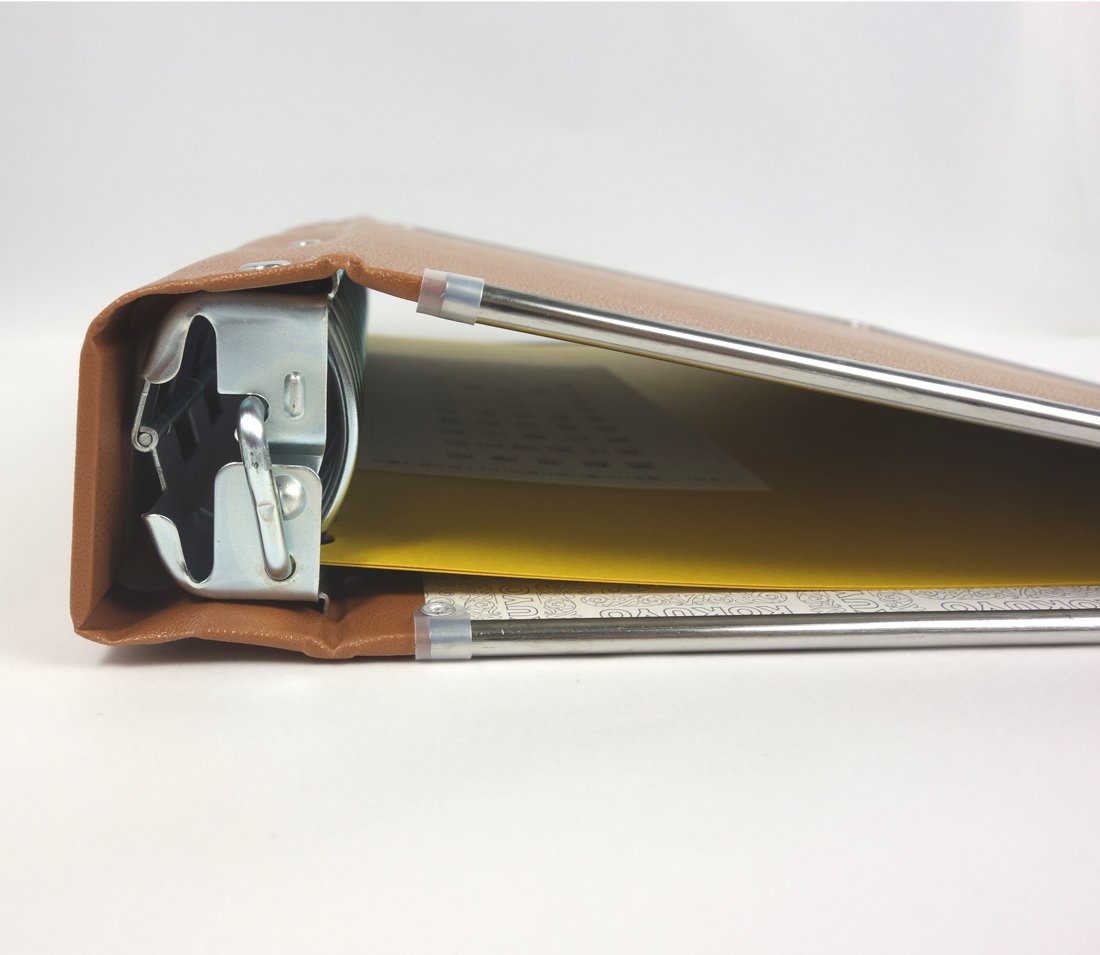・ 表紙の四隅に施されたステンレス製のふち金が、角の傷みを防ぎ、製品寿命を延ばします。