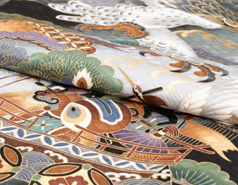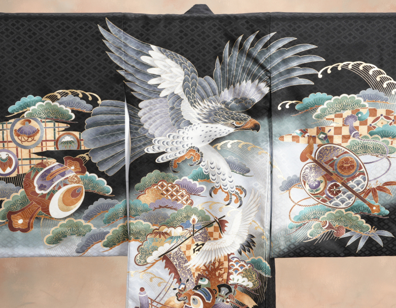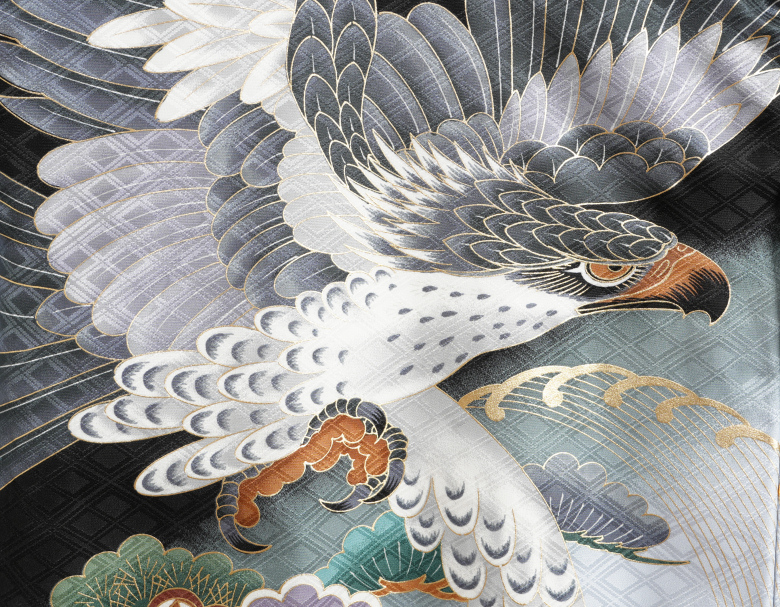 | 柄・特徴 | 鷹 宝船 軍配 飛翔鶴 菱地紋生地 |