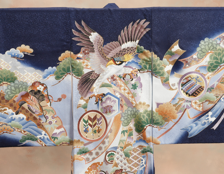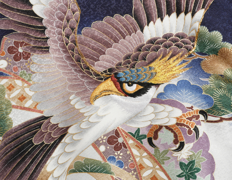 鷹の頭部分は刺繍仕立てで柄には金彩の縁取りなども使用してあり見た目にも豪華さのある仕様になっています!!