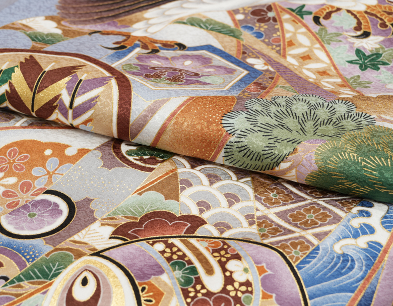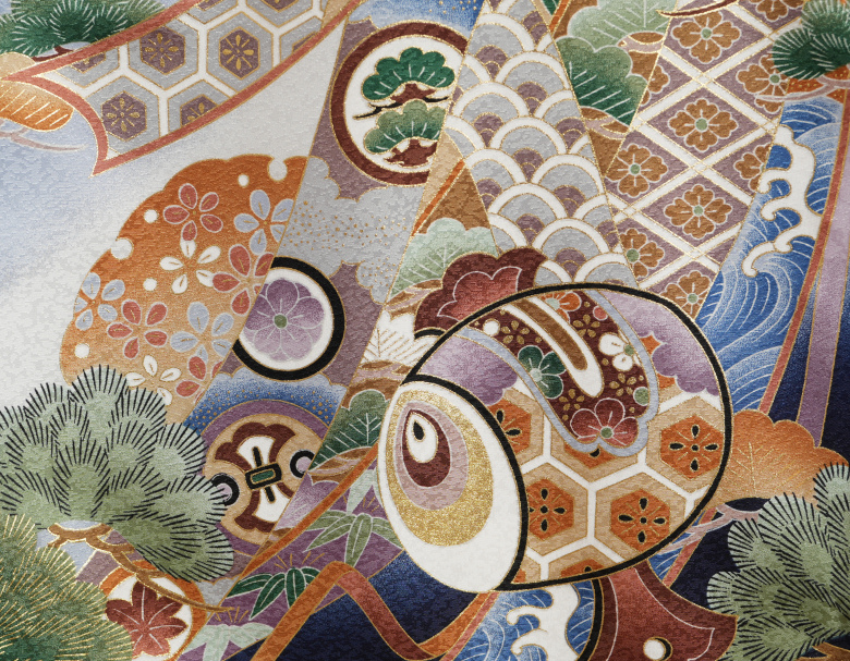 | 柄・特徴 | 鷹 刺繍使い 松竹梅 吹雪地紋生地 |