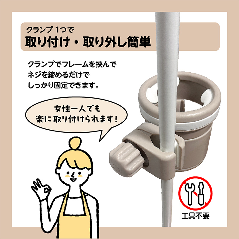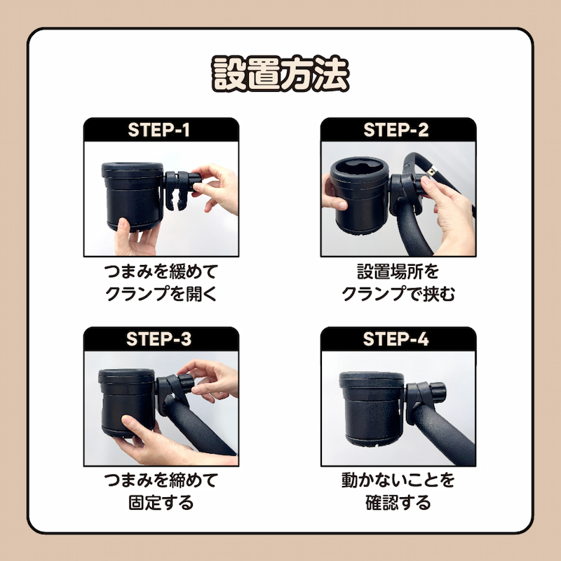 ・重みで傾かない:強力なクランプ固定により、ドリンクの重みでホルダーが垂れ下がってしまうストレスを解消しました。