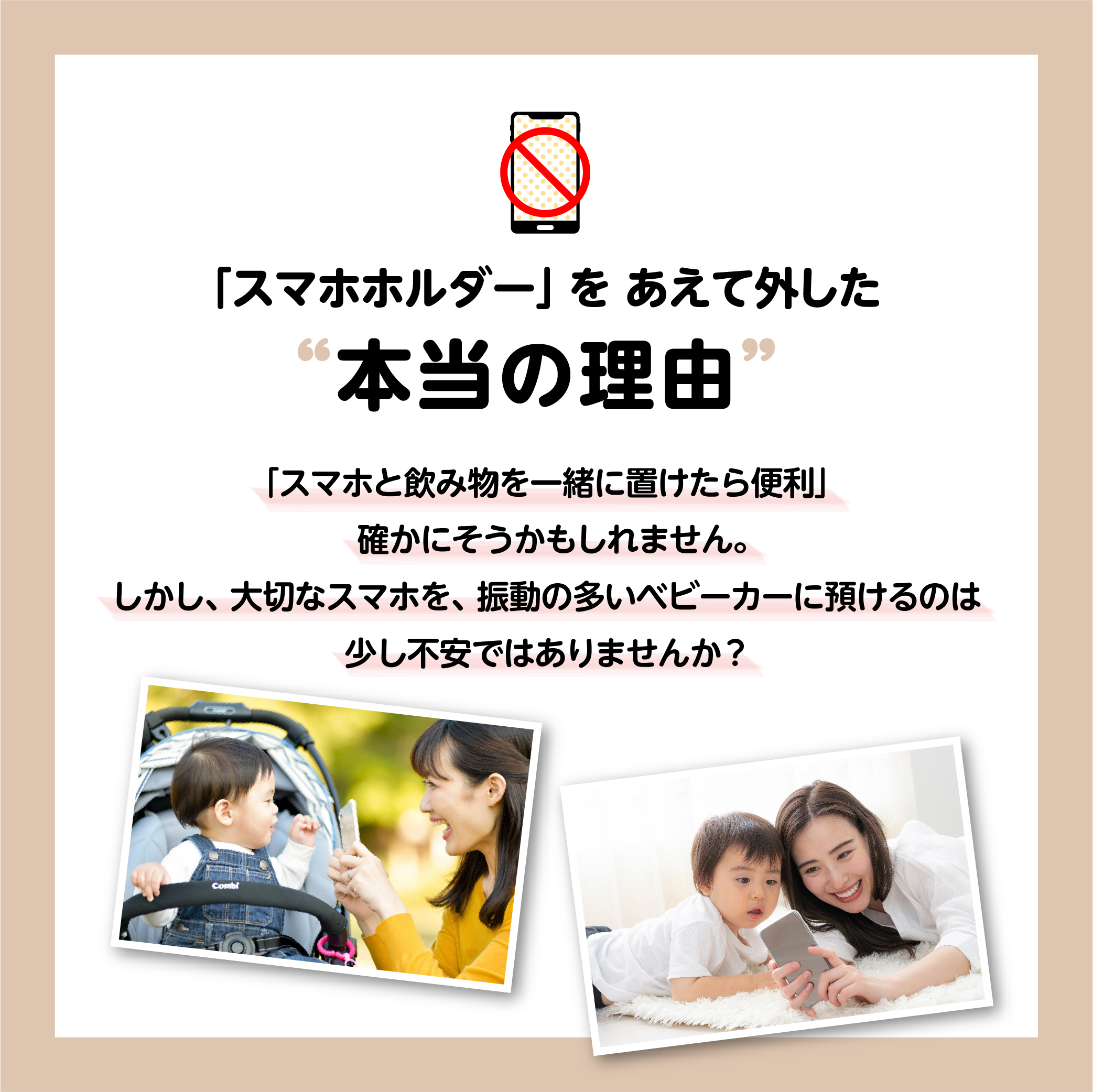 ・スライド&格納:使わない時はサブホルダーをコンパクトに折りたためるため、ベビーカーの操作を邪魔しません。