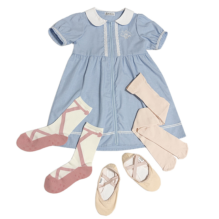 イーバレリーナオリジナルの、子供からジュニア向けの前開き半袖ワンピースです。