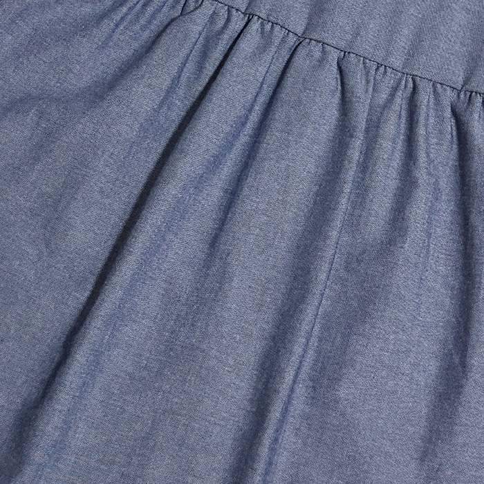 白の梯子レースが袖と裾にあしらわれ、締め色としてアクセントになっています。