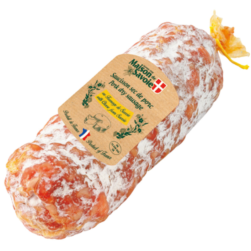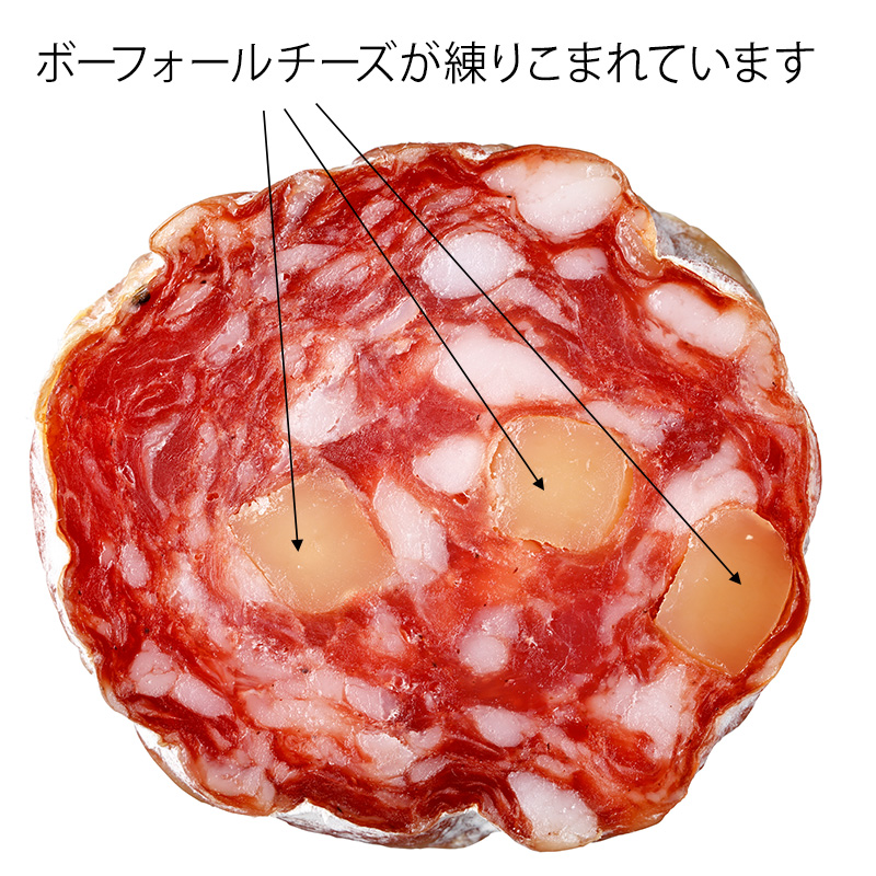 こちらのソシソン=サラミはサヴォワ地方で作られ、現地の名産品であるボーフォールチーズが練り込まれています。