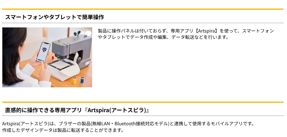 スマートフォンやタブレットでデザインをして簡単に刺しゅうできます。