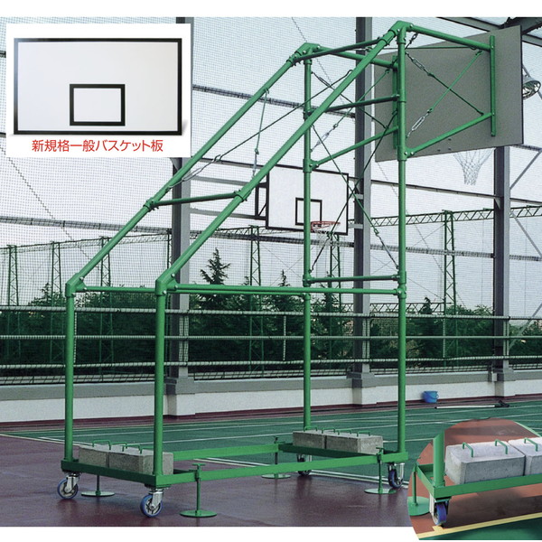 | ●数量/2台1組 ●主材/直径250(ストッパー)、直径130(ウレタン幅広キャスター) ●ウエイト8ケ付 ●無鉛塗装 ●※リング、ネット付 ●※ボード板、取付金具付 ●一般バスケット板 新規格(B-5929):材質/合板、寸法/幅1800mm×高さ1050mm×厚さ24mm | |