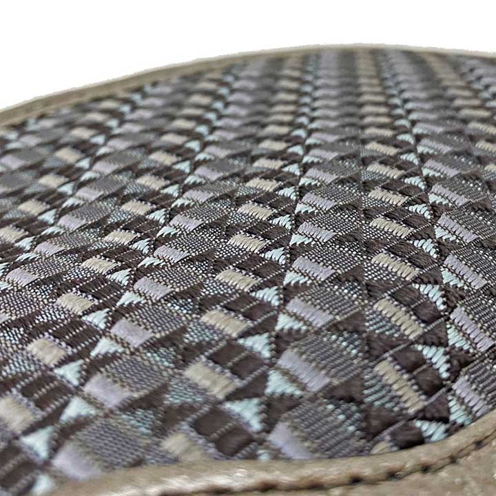 大倉織物様の『琥珀織』は薩摩切子をモチーフにされており、通常より高密度かつ太めの糸で織られた『琥珀織』は表面の立体感が特徴的となっております。立体的に表現された折柄は、贅沢で煌びやかな高級感のある光沢感を見せてくれます。