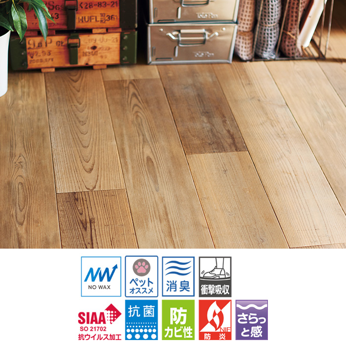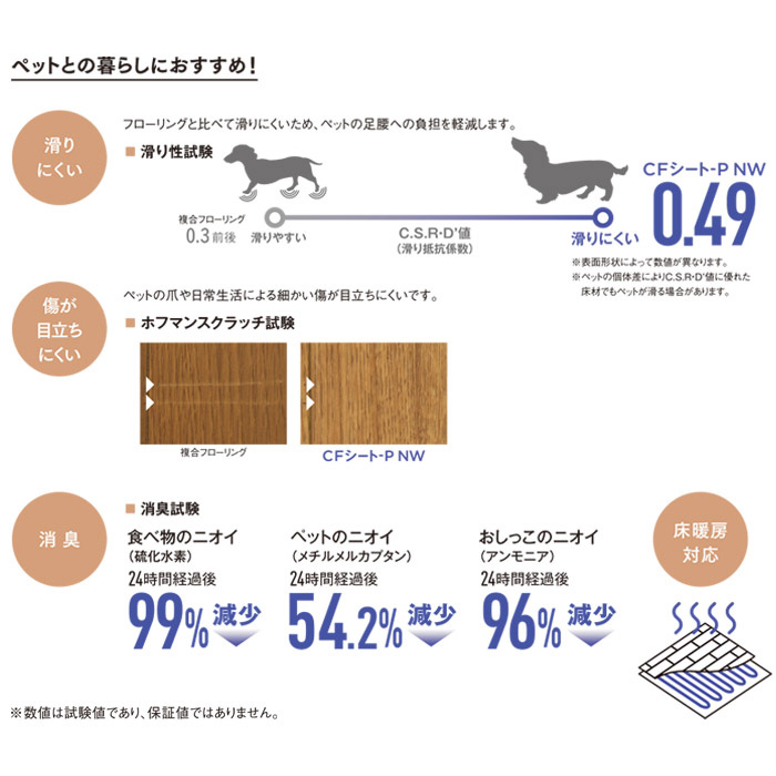 滑りにくく傷が目立ちにくい、消臭効果のある床材クッションフロア。