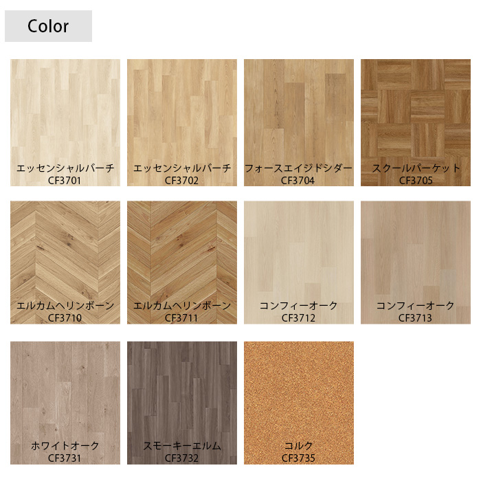 インテリアに合わせて選べる豊富な木目柄・コルク柄。