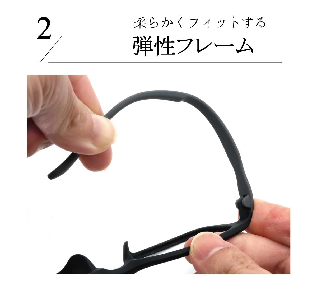 +0.5度数で17g、+2.5度数でも24gの超軽量。掛けていることを忘れるほどの軽さで、鼻や耳への負担を軽減します。また、金属を一切使用していないため、金属アレルギーをお持ちの方にも安心してご使用いただけます。