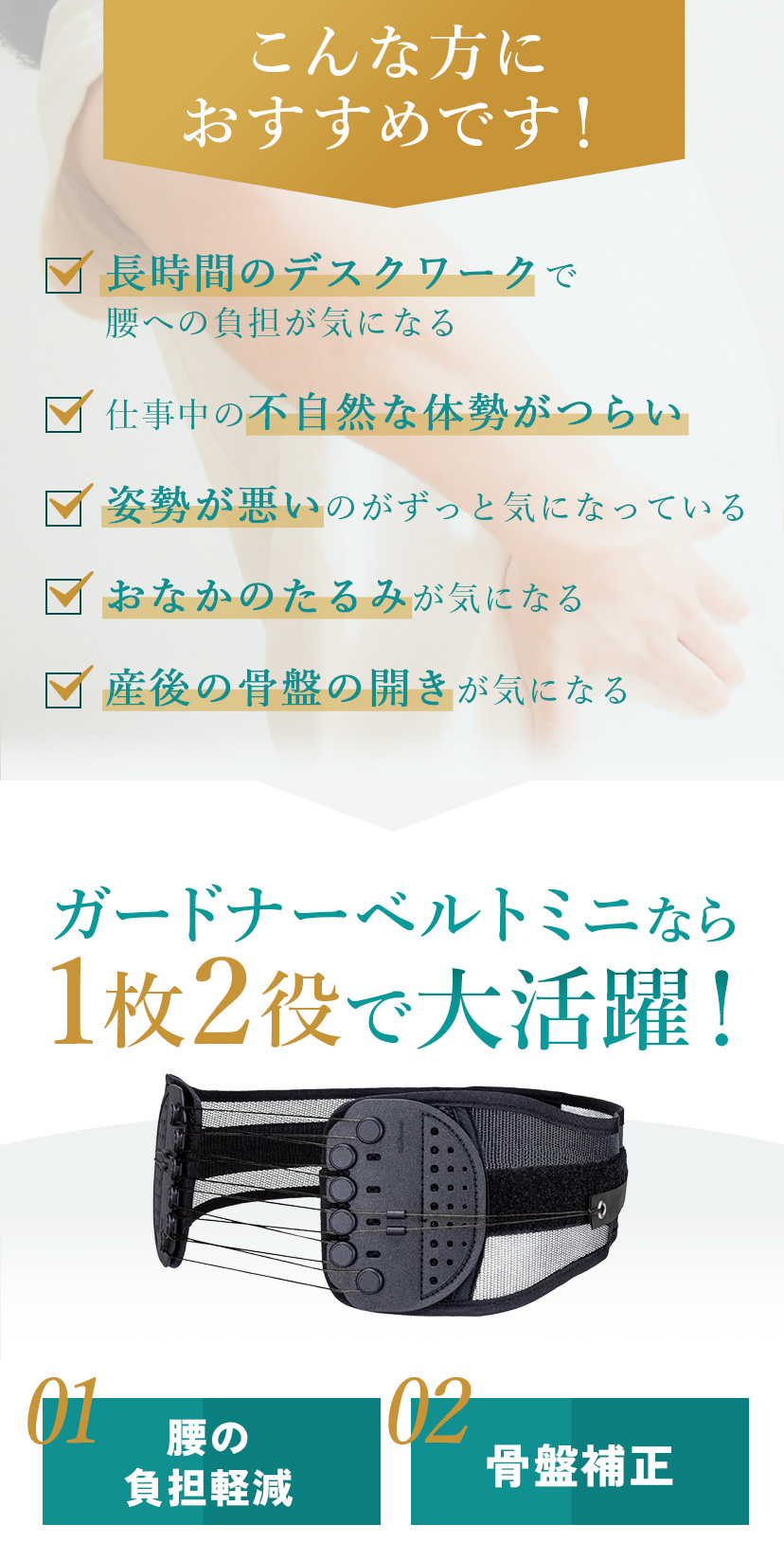 ガードナーベルト mini(ミニ)|コンパクト腰サポートベルト|強力締め付け・持ち運びしやすい|日常使い・デスクワーク|男女兼用【公式】