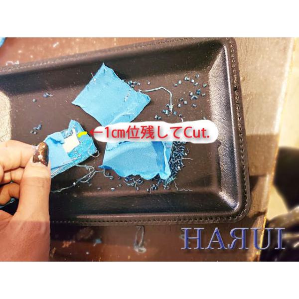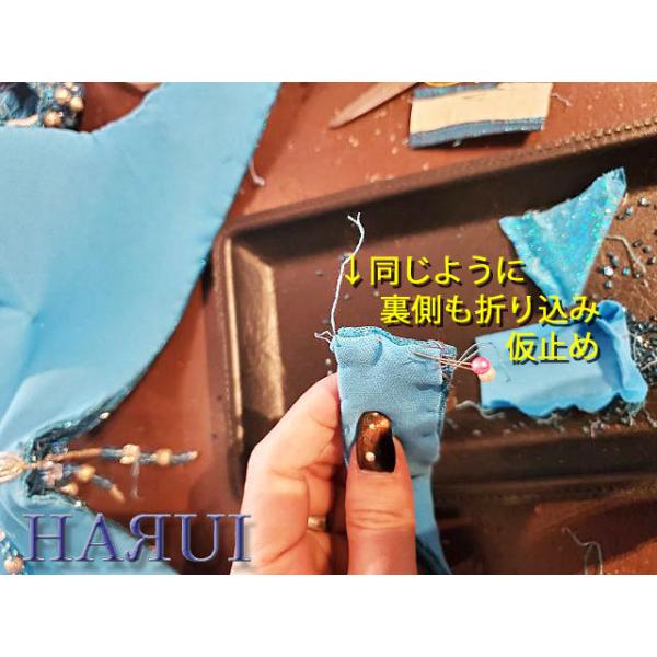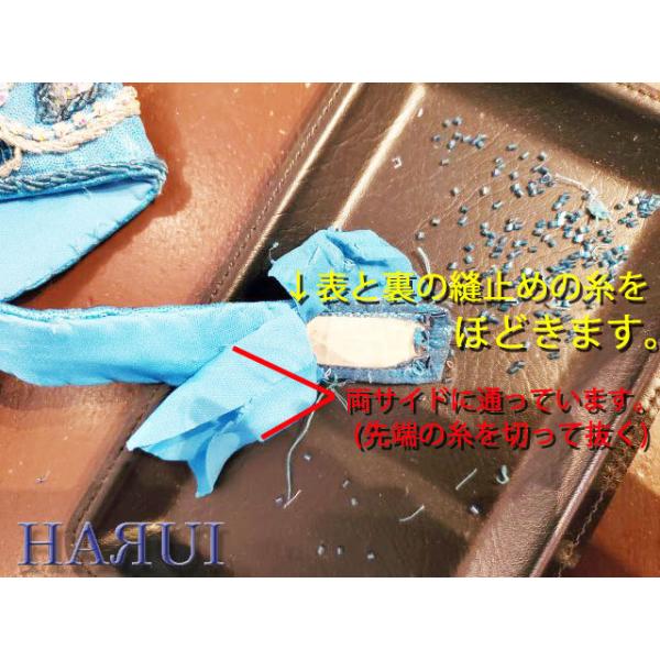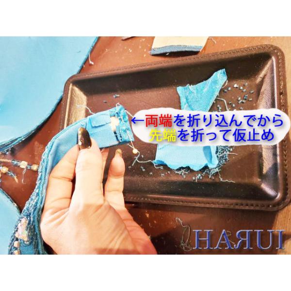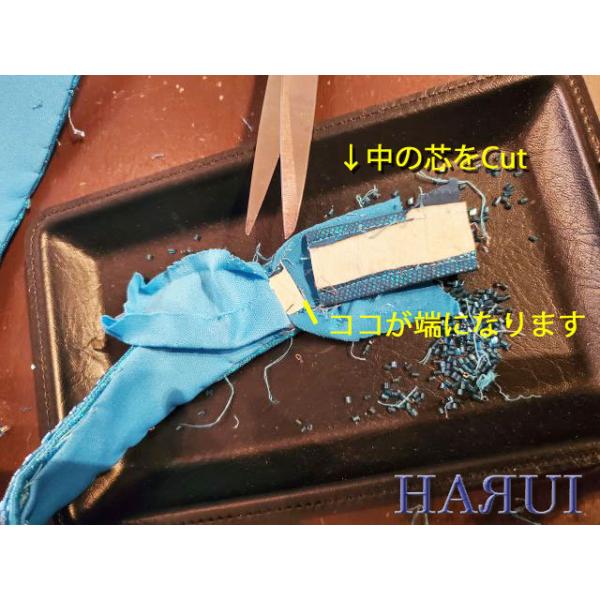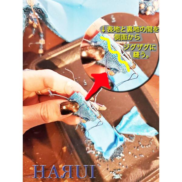 ビーズを外した後の、残った糸を裏面へ通してから 玉止めします。