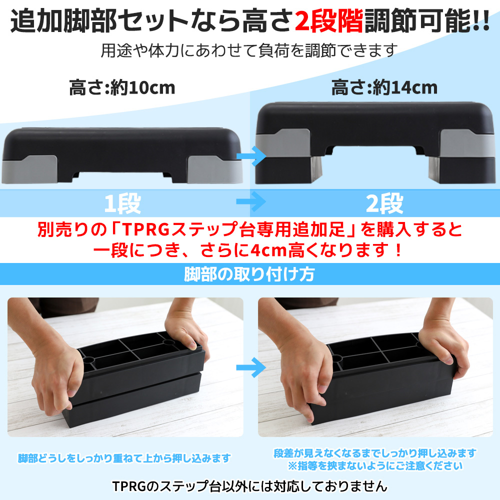 ステップ台は専用追加脚部を使用することで高さと負荷をアップさせる事が出来ます。