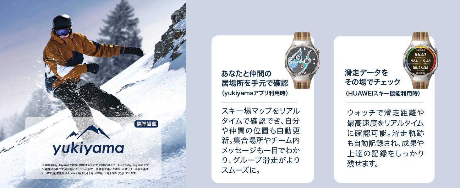 Q4.HUAWEI WATCH(WATCH 5、Ultimate 2、GT6シリーズ)とスキー用アプリ「yukiyama」を連携すると、どのようなメリットがありますか?