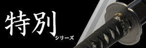 | 材質 刀身:超硬質軽量合金、柄下地:朴木、柄糸:綿糸(黒)、鮫皮:本鮫(白)、鍔:鉄製、緑頭:銅製、目貫:合金製 | ||||||||