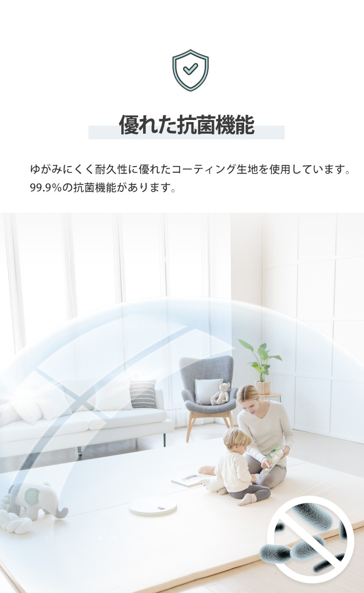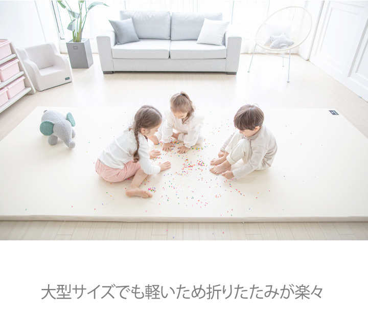 | 仕様 | 複数のフォームを1枚のカバーで覆った超大判サイズのマット ・化学薬品は一切不使用です ・チャックをあけて分解できるので保管も簡単 ・表面は特殊構造で隙間にゴミが入りにくい ・程よいクッション性 ・厚さ4cmで優れた防音性 ・生活防水で掃除も楽々 ・コーティングで抗菌力を強化し、カビの発生を予防します ・床暖房のお宅でも使用可能 ・ナチュラルカラーでインテリアにも最適 ・表面ブランドタグ付き(タグ位置はランダムです) |