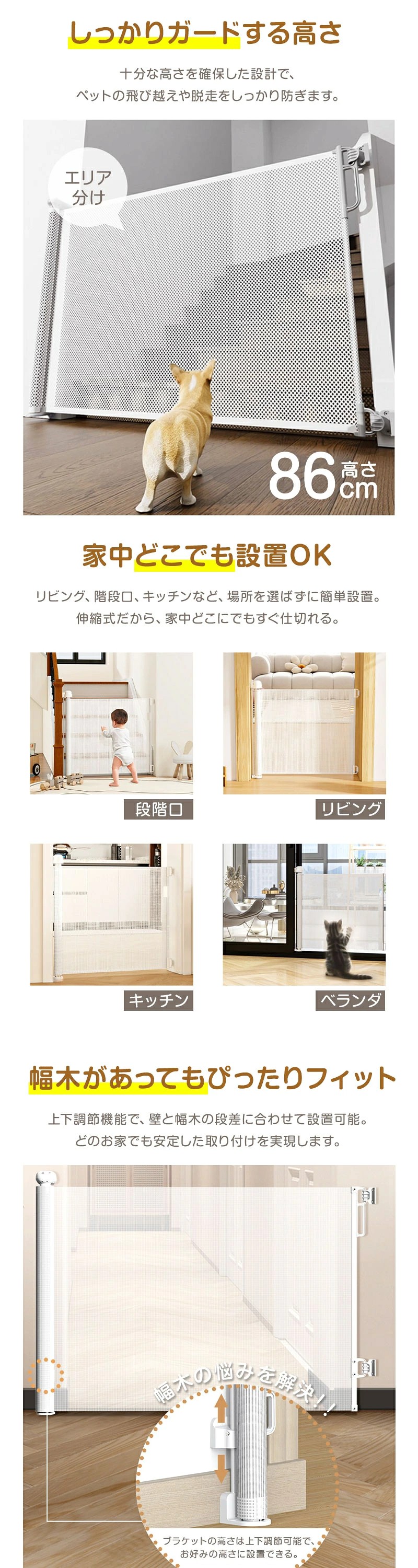| 階段上/階段口/玄関/キッチン/廊下 室内の安全対策・ペットゲートとして使用可能 |