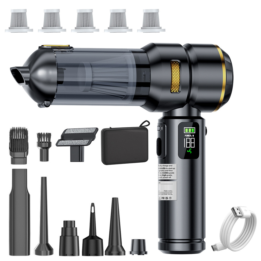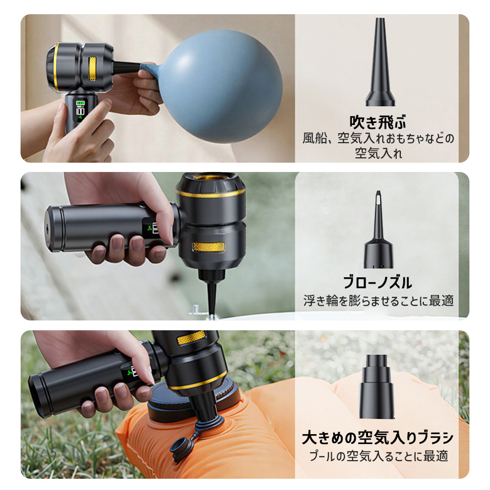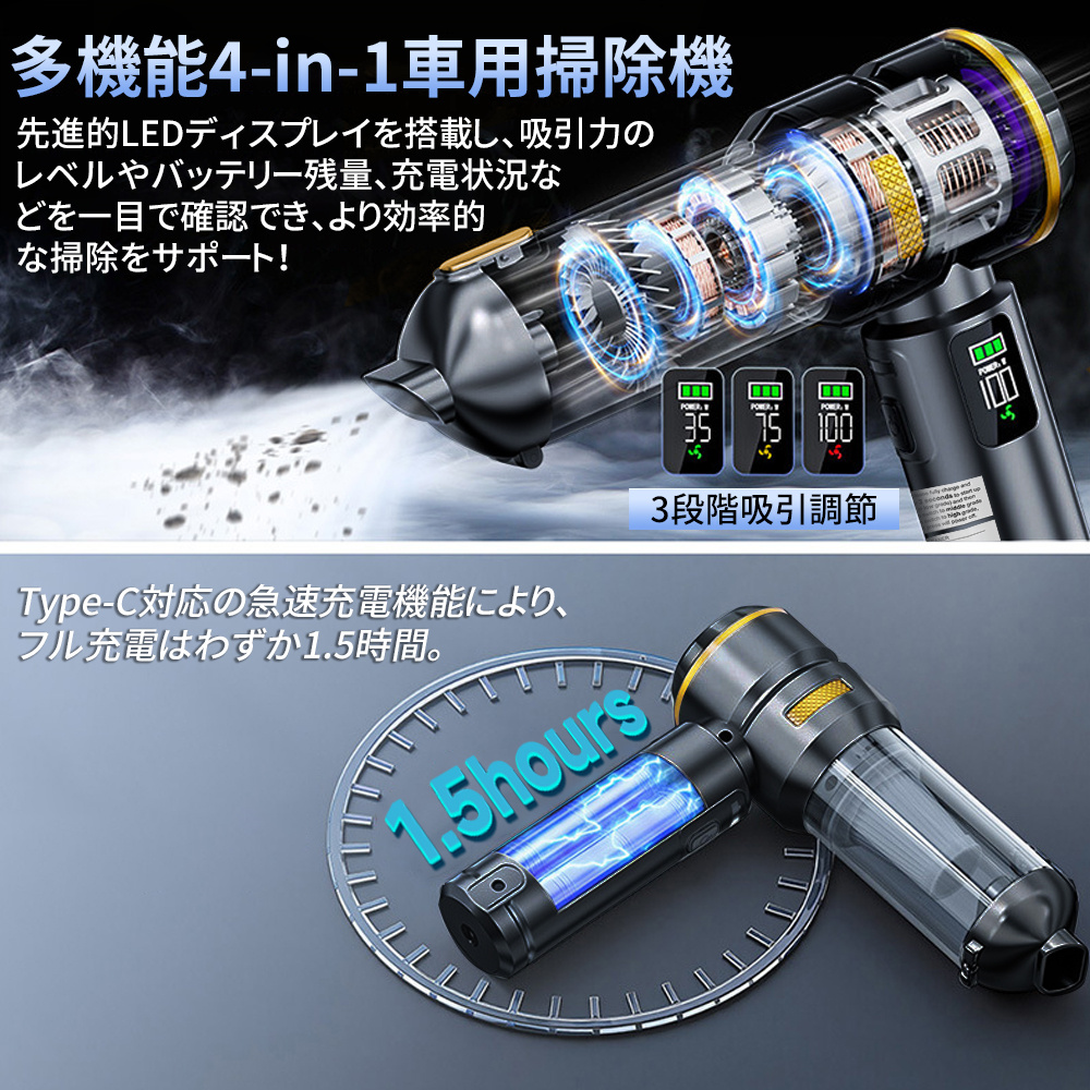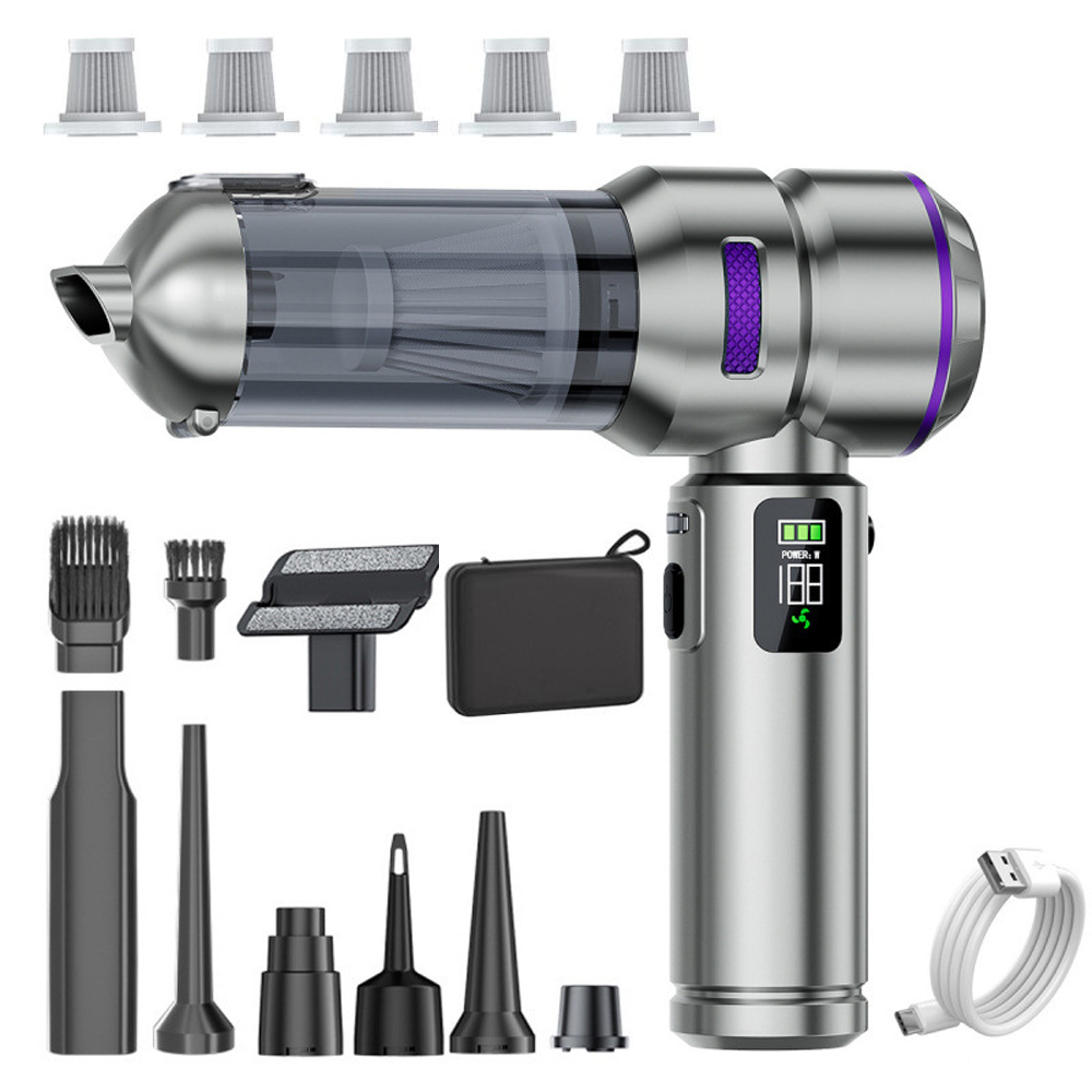 1.吹き飛ぶ2. 吸い込む 3.空気入れ 4.空気抜き。このハンディクリーナーはミニ掃除機/エアダスター/電動エアーポンプとして利用可能です。ソファの隙間、キーボード、車内掃除、ネックピロー、エアベッド、エアボート、専用衣類圧縮袋などの場所に使用可能です。7種の交換用アタッチメントを備えて、ゴミの取り残しを軽減し、掃除の効率を高めます。車内/自宅兼用の小型掃除機です。