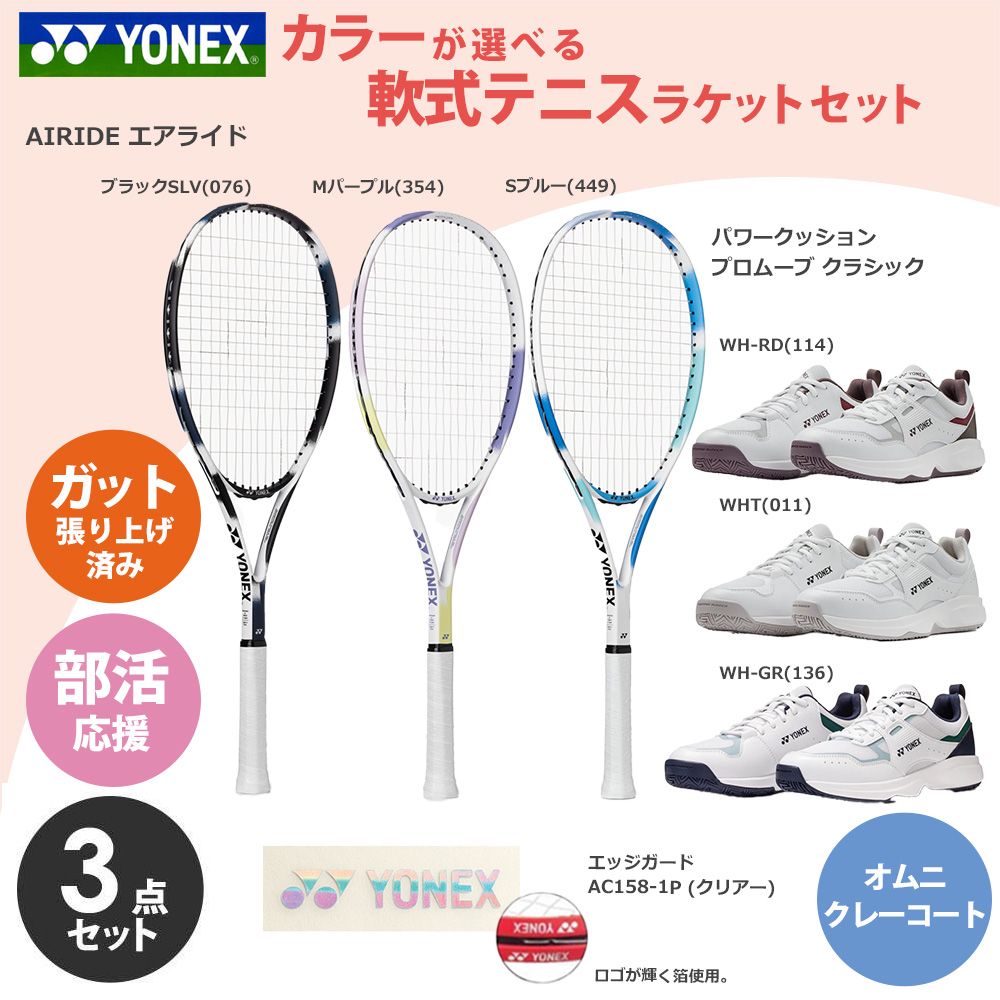 「ガット張り上げ済み」セットでお得 ソフトテニスラケット 部活応援(オムニ・クレーコート用)エアライド ARDG+シューズ+エッジガード 3点セット