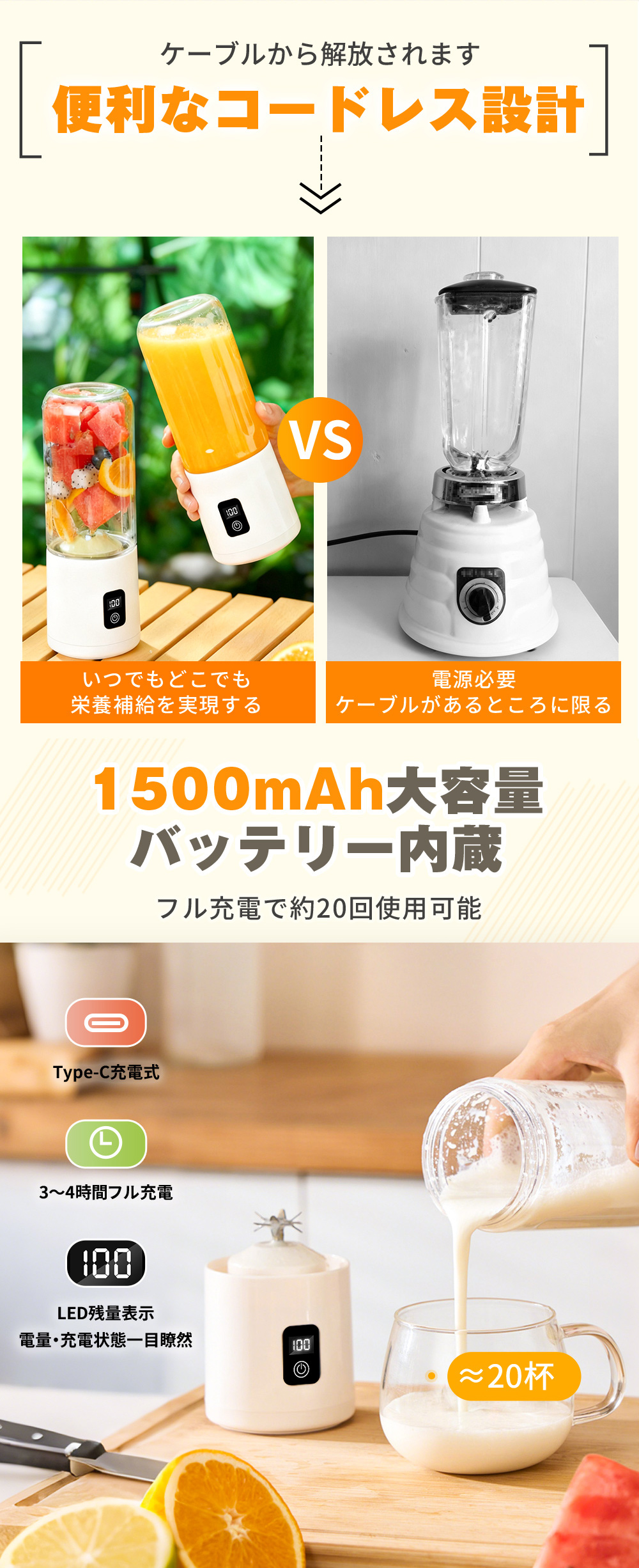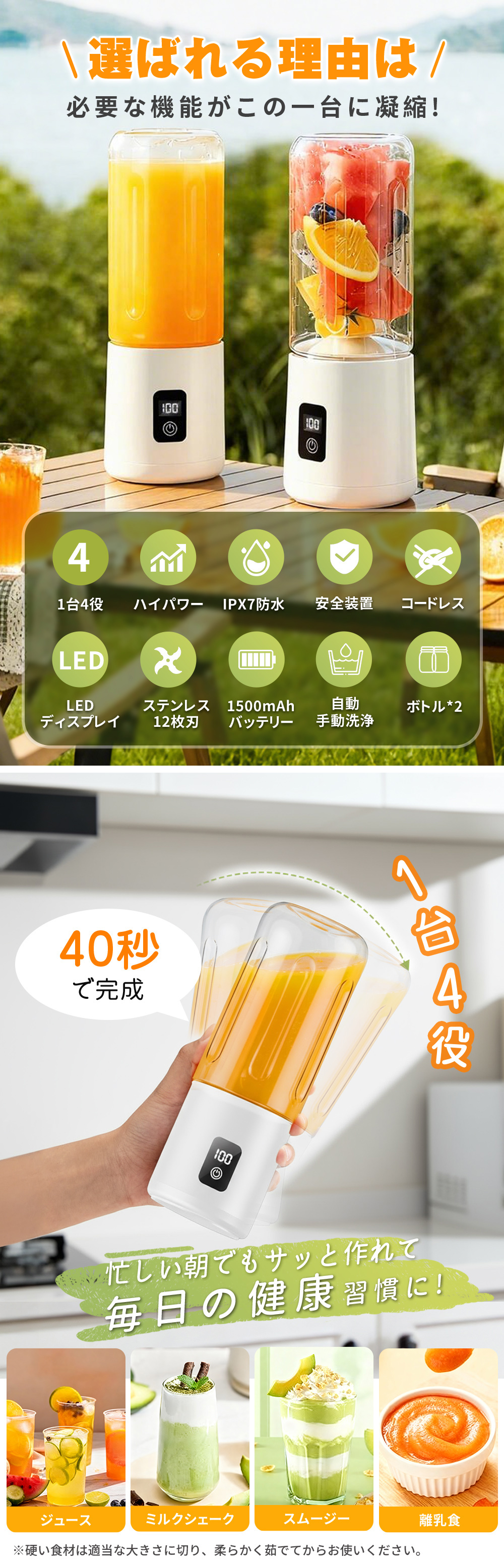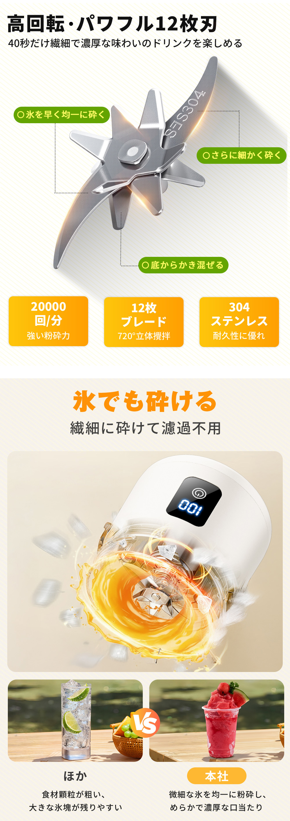 野菜や果物一瞬で粉砕、氷でも砕ける!
