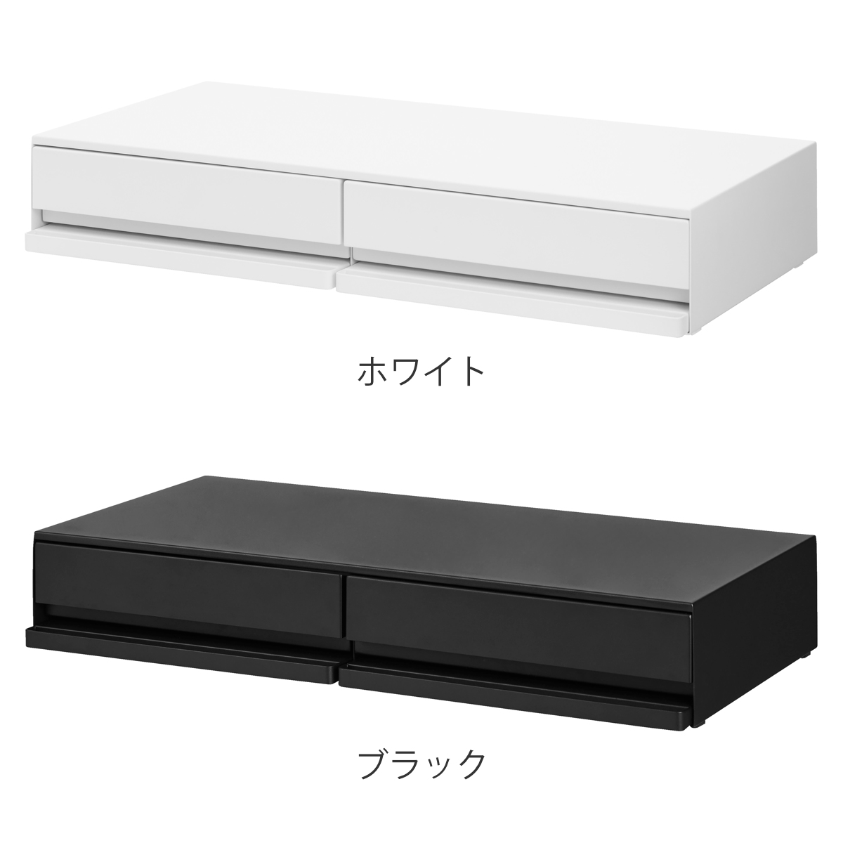 引き出しとスライドテーブルは上下入れ替えて使うことができます。用途や上に置く家電に合わせて使いやすいようにアレンジできます。電子レンジを上に置いてスライドテーブルを下に設置すると、テーブルに置いた物が扉にぶつかりにくいです。